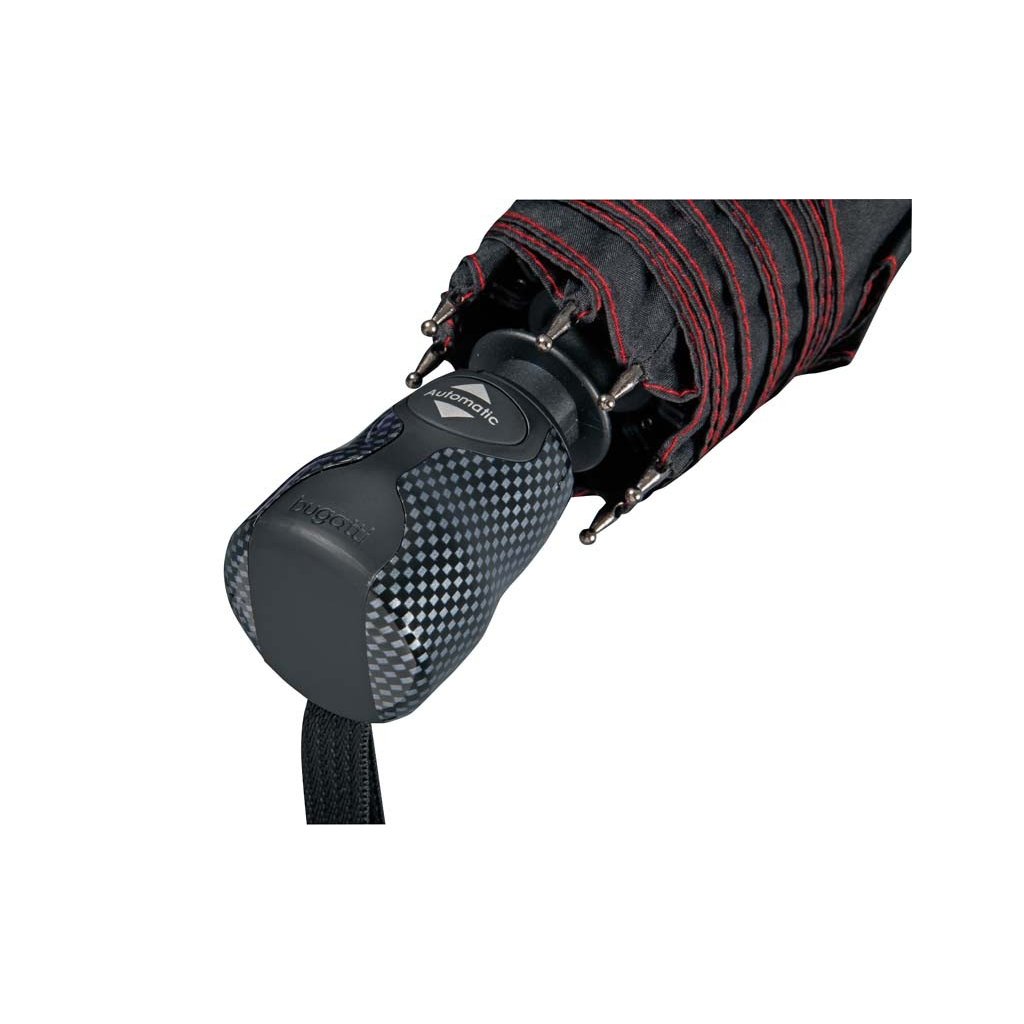 Elegantní pánský plně automatický deštník v dárkové krabičce od trendy značky Bugatti. Deštník zaujme i svou velikostí - s pouhými 29 cm délky se vejde do každé kabelky. Konstrukce z hliníku a carbonu lehká větruodolná konstrukce. Polyesterový potah je odolný proti změnám vlhkosti a teplot, nesráží se.