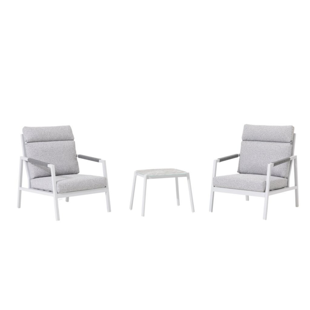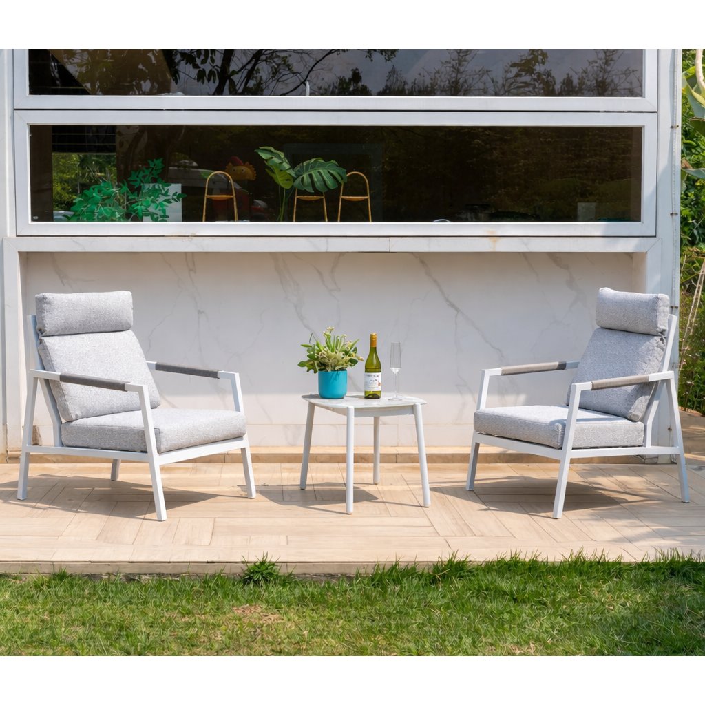 Lehká hliníková konstrukce v nadčasové bílé barvě zajišťuje nejen pevnost a stabilitu, ale i jednoduchou manipulaci. Set je ideální pro každodenní použití na terase, balkóně či zahradě, kde si užijete relaxaci na čerstvém vzduchu.