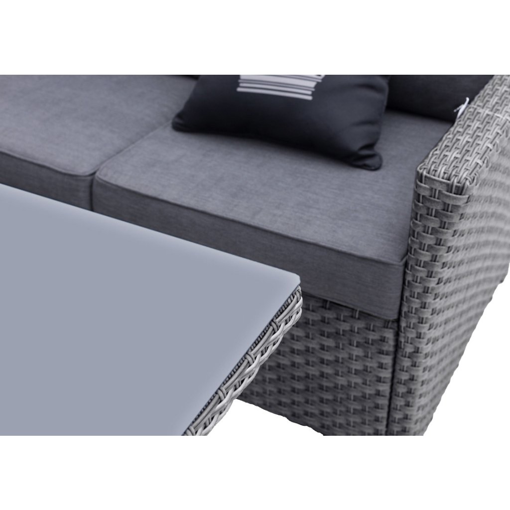 Stabilní hliníková konstrukce zaručí pevnost a lehkost sedací soupravy HAVANNA COMBI. Konstrukce je opletena pevným umělým ratanem v antracitové barvě. Maximální pohodlí zahradní sedací soupravy zabezpečí bohaté, masivní polstry a polštáře se snímatelným potahem z materiálu Olefin, aniž by dlouhodobým používáním ztrácely svůj tvar. Olefin je vysoce jakostní oděruvzdorná tkanina s výbornou stálobarevností, je vodoodpudivá, s impregnací proti plísni a špíně.