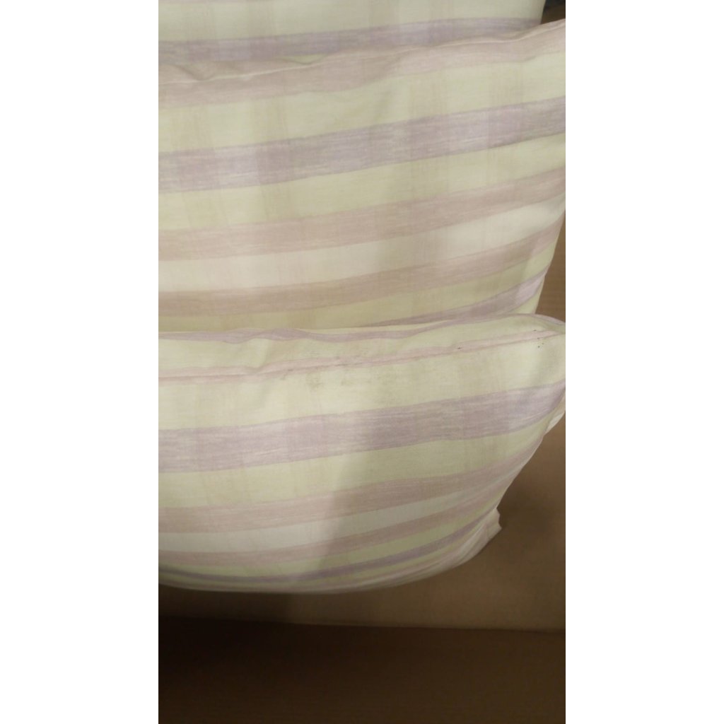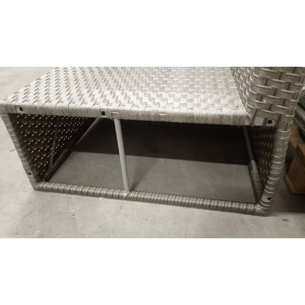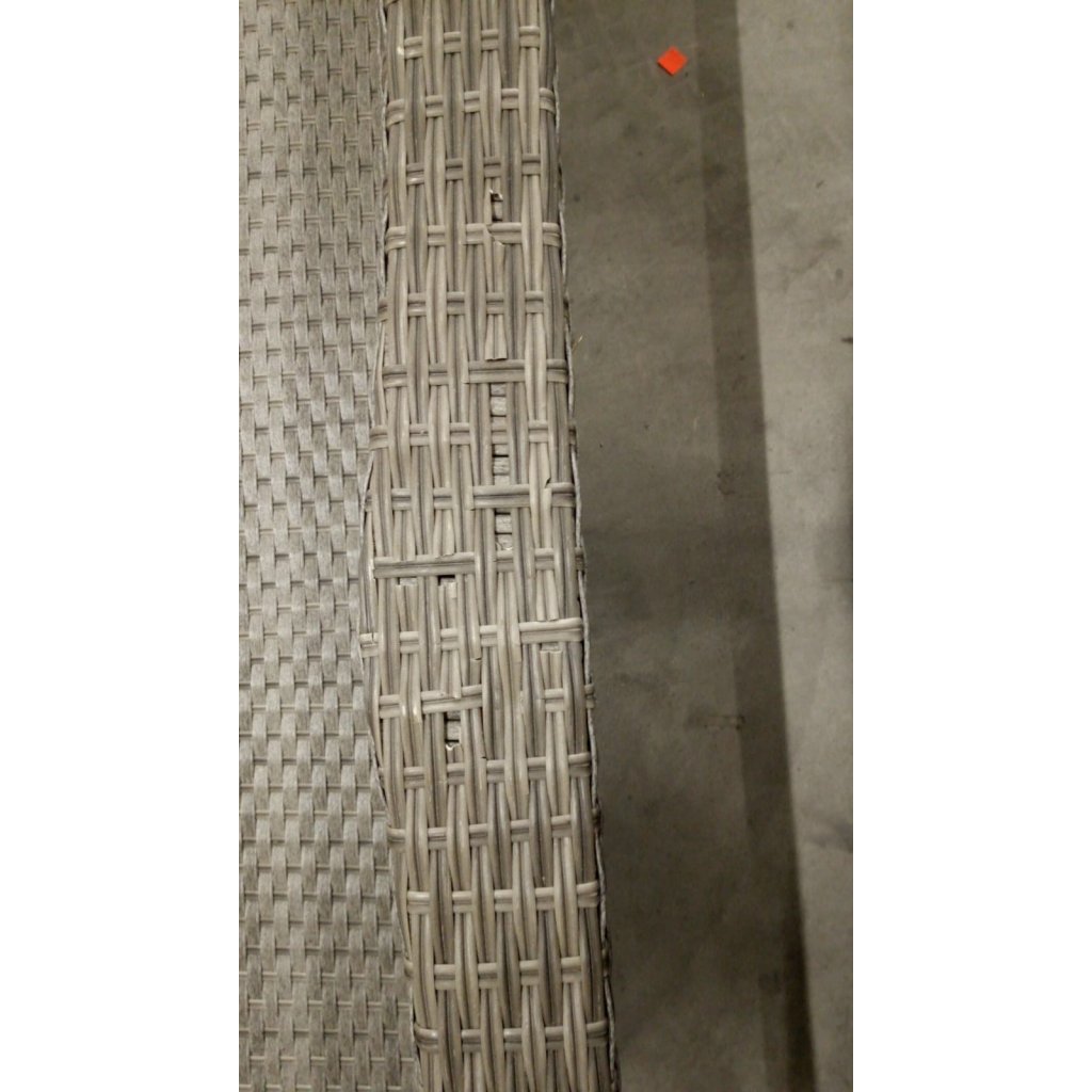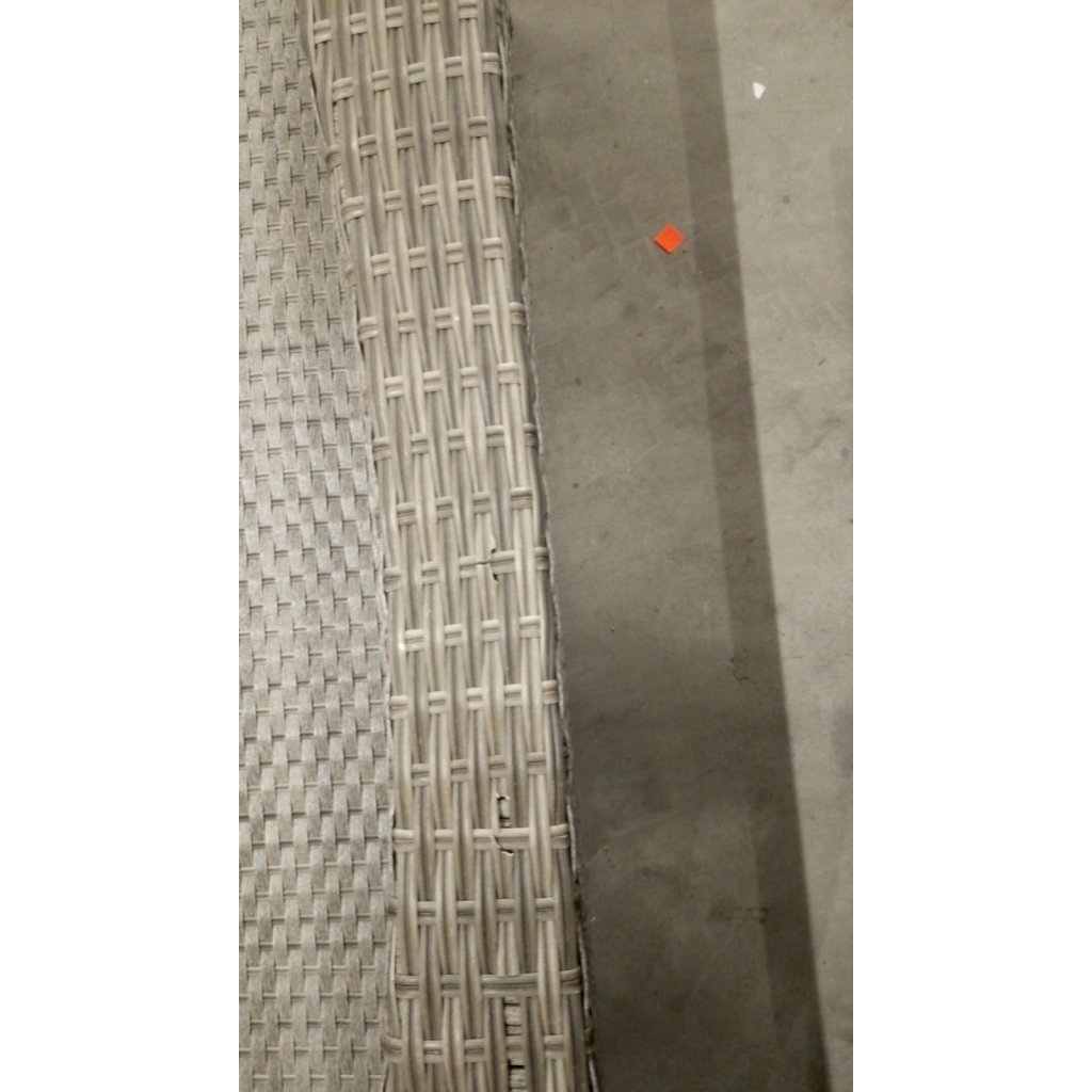 Důvod 2. jakosti: U lavice chybí boční opěrka. Mezi lavicemi je mírná mezera (viz. foto). Na opěrce je lehce poškozen ratan. Dekorační polštářky jsou špinavé.