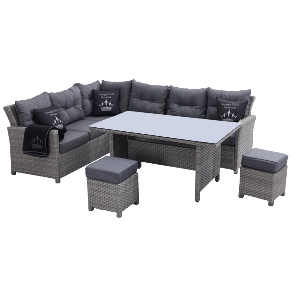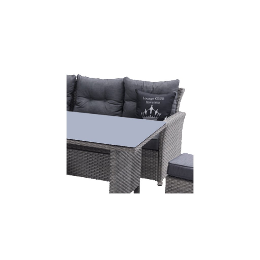 Celkové provedení exkluzivní ratanové soupravy HAVANNA COMBI zaručí dlouhý a bezúdržbový provoz. Ratanová souprava od značky DOPPLER se skládá z rohové pohovky, 2 ks taburetů a stolu s bezpečnostním, strukturovaným ochranným sklem. Souprava byla navržena tak, aby se stala dokonalou součástí Vaší terasy nebo zahrady a dopřála Vám maximální pohodlí a pocit bezpečí ve volných okamžicích každodenního koloběhu života.