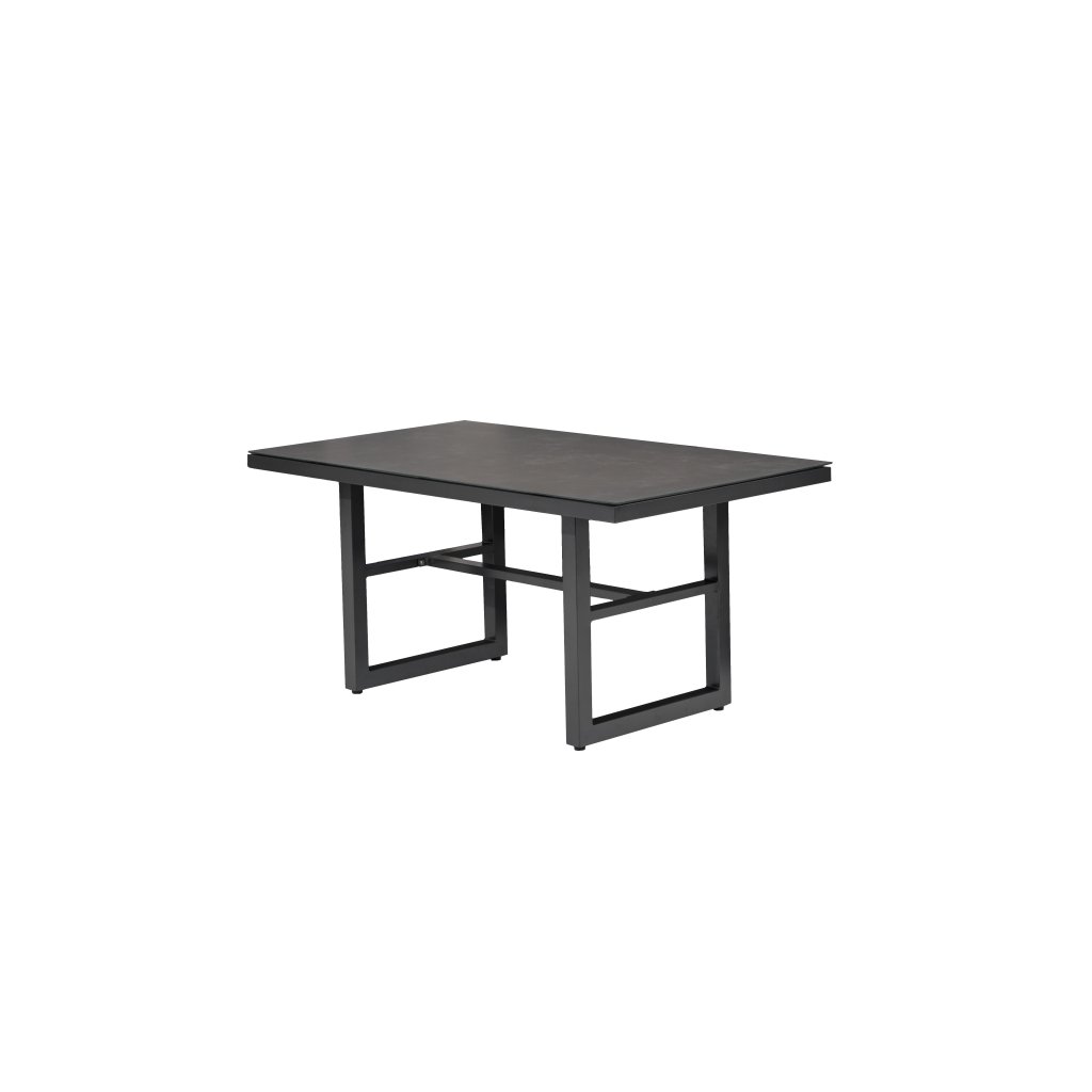 Stůl má skleněnou desku o tloušťce 5 mm, která zaujme keramickým nástřikem. Desku doplňuje odolná hliníková konstrukce zaručující dlouhou životnost.