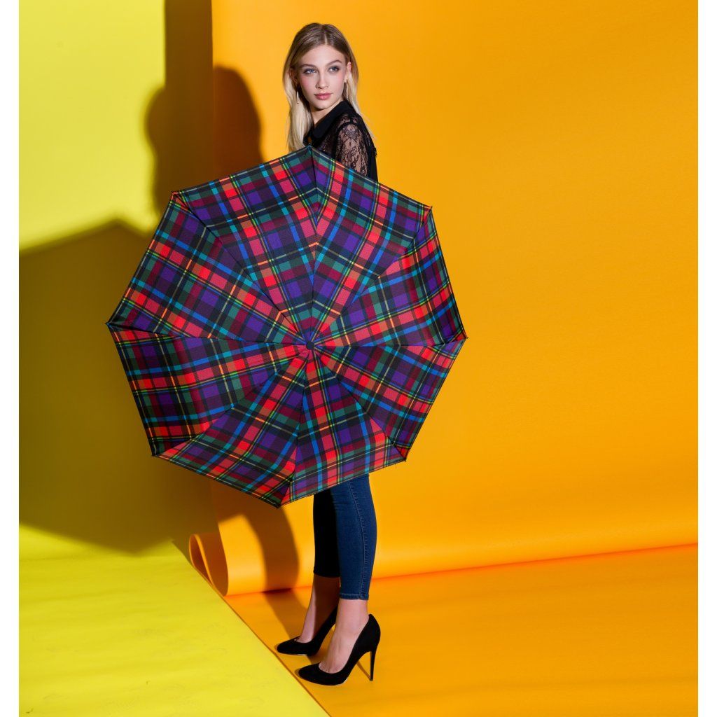 Hit Mini Check je skládací deštník s károvaným vzorem. Svou váhou a velikostí je vhodný i pro každodenní nošení v batohu či kabelce. Je vyrobený z oceli a sklolaminátu. Potah z látky pongee je odolný vůči změnám vlhkosti a teplot, nesráží se.