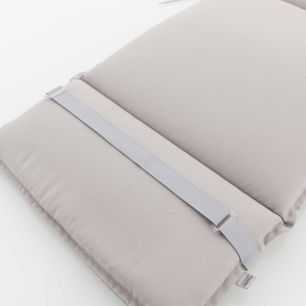 Polstr s nízkou opěrkou na zahradní nábytek řady HIT UNI je v provedení s obšitým lemem, prošitý 1x v opěradle. Uchycení je pomocí posuvné spony. Díky sponě si můžete nastavit velikost dle rozměru a druhu židle, spona je pevná a nevytahuje se. Upevnění sedáku je pomocí dvou tkaniček v ohybu polstru. Potah je nesnímatelný.