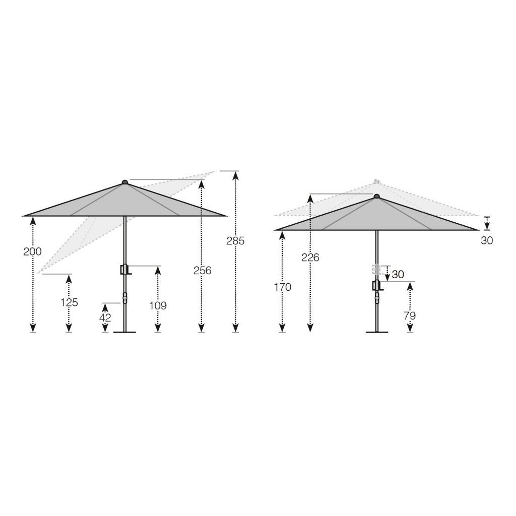- celková výška otevřeného slunečníku: 256 cm