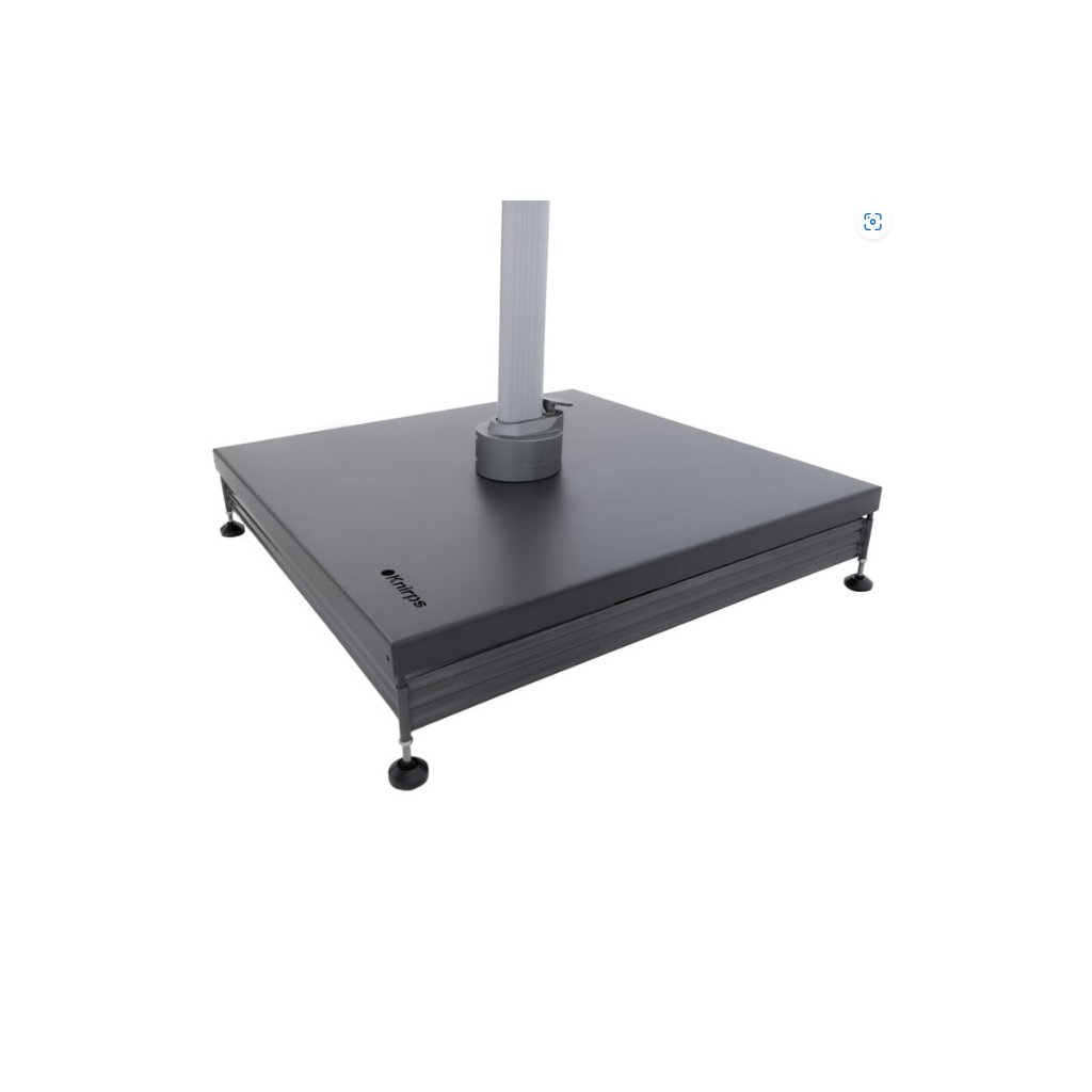 Kovový dlaždicový stojan je perfektní řešení pro stabilní kotvení slunečníku Knirps 3,2 x 3,2 m s boční nohou. Základní konstrukci tvoří robustní kovový rám z pozinkované, práškově stříkané oceli. Je vhodný pro uložení 4 kusů zátěžových desek s rozměrem 50 x 50 cm, s max. výškou dlaždice 12 cm. Pomocí čtyř šroubů lze slunečník rychle přichytit na určené místo.