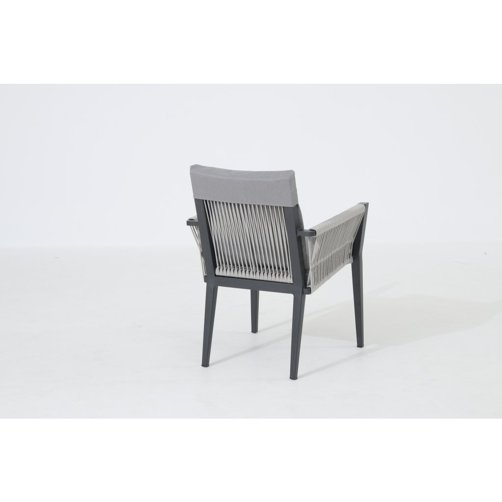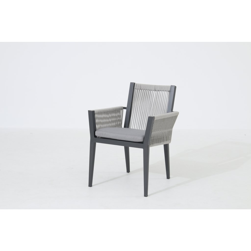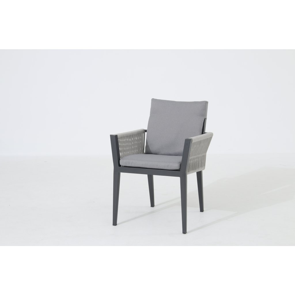 Důvod 2. jakosti: Zboží rozbaleno skladem. Luxusní zahradní křeslo Namaste má masivní hliníkovou konstrukci v antracitové barvě. Bočnice a opěrná část křesla jsou z pevného, povětrnostním vlivům odolného provazového výpletu. Sedací část je z masivního hliníkového profilu včetně polstru na sedáku i opěradle, s praktickou kapsou přes opěradlo. Díky této kapse polstr pevně drží na křesle, nesjíždí a nekrabatí se.