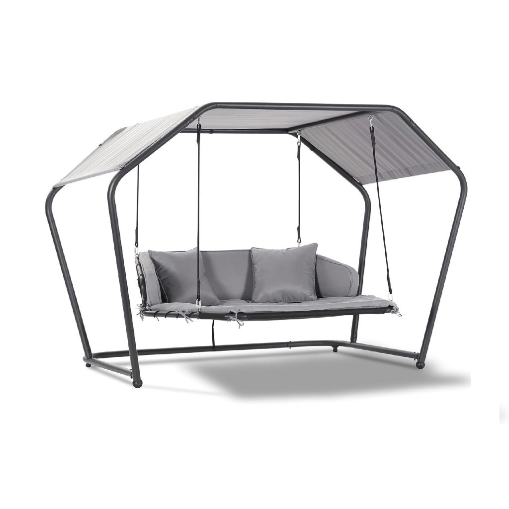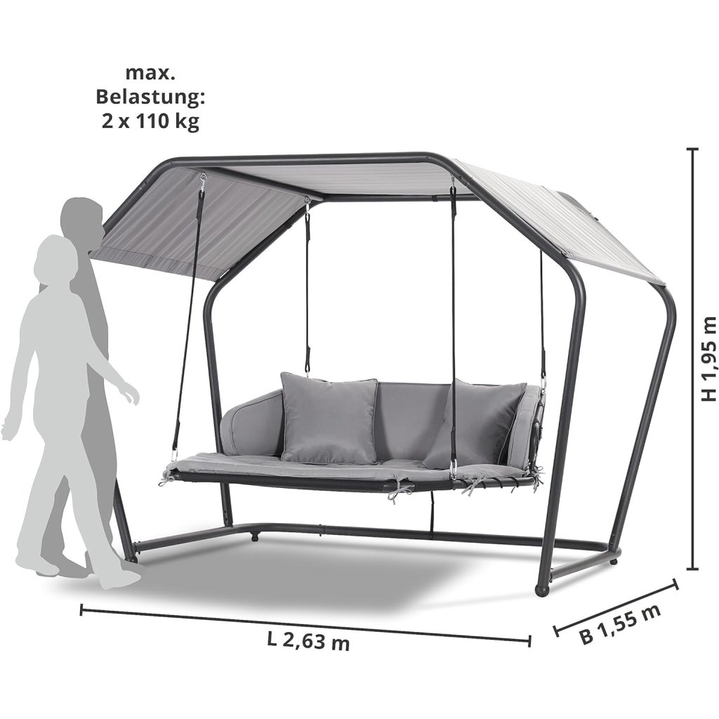 Součásti balení: 1× houpací lehátko, 1× poduška, 2× polštář, 1× markýza, 1× návod k montáži