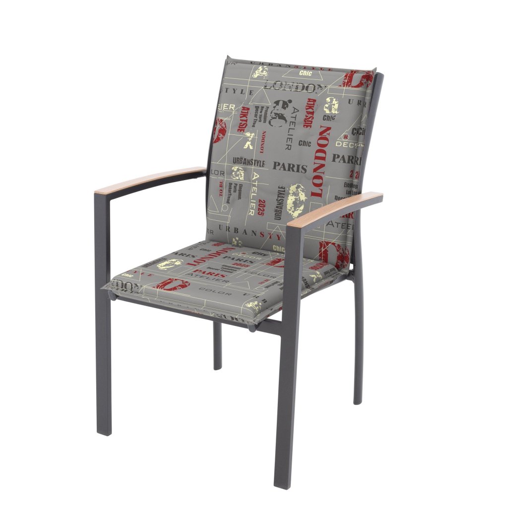 Polstr s nízkou opěrkou na zahradní nábytek řady LIVING je v provedení s obšitým lemem, prošitý kroužkově 2x v opěradle. Uchycení je pomocí posuvné spony. Díky sponě si můžete nastavit velikost dle rozměru a druhu židle, spona je pevná a nevytahuje se. Upevnění sedáku je pomocí dvou tkaniček v ohybu polstru. Síla polstru je optimální pro všechny druhy židlí. Provedení je vhodné i do náročných podmínek kaváren, zahrádek a restaurací. Potah je nesnímatelný.