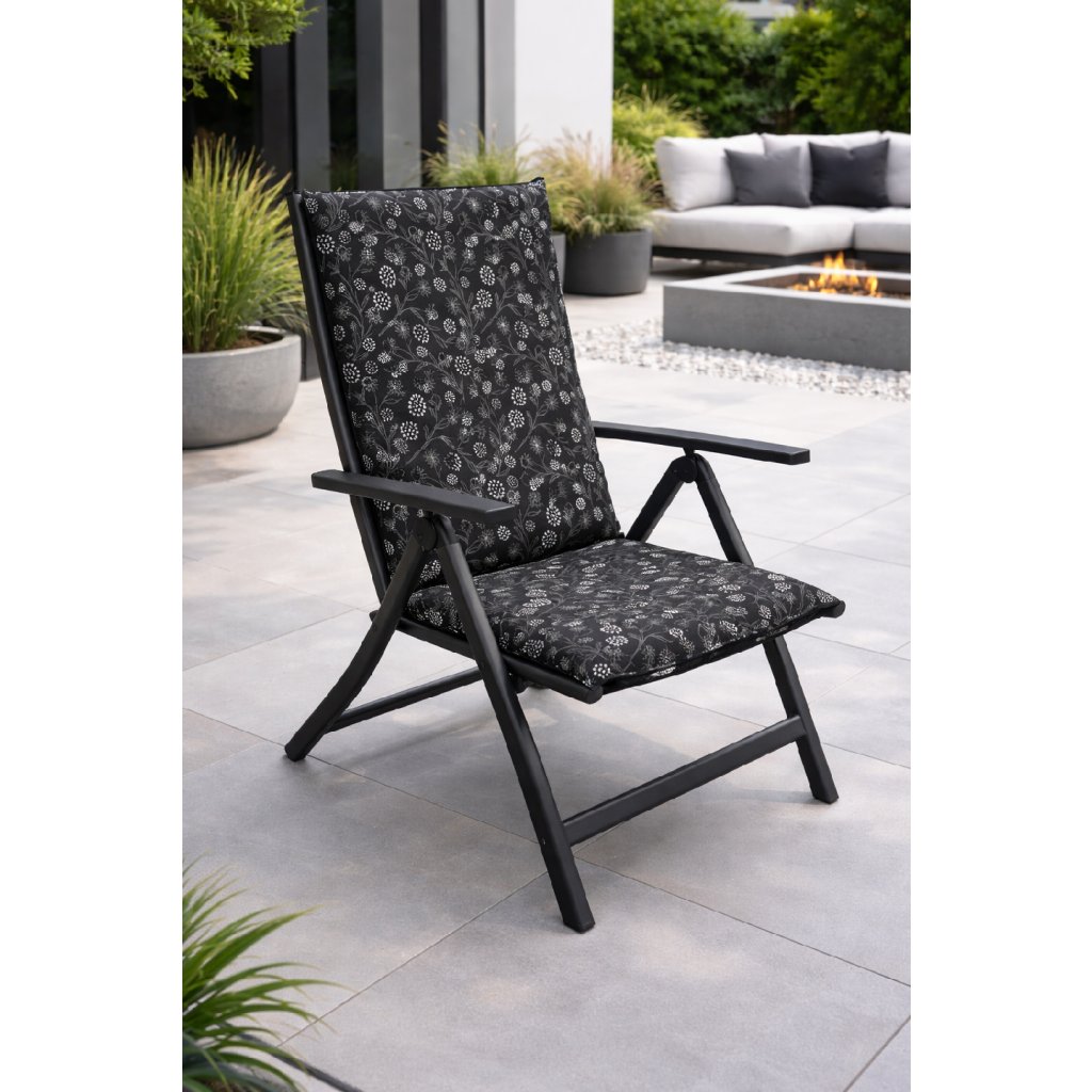 Polstr s vysokou opěrkou na zahradní nábytek řady LIVING je v provedení s obšitým lemem, prošitý kroužkově 4x v opěradle. Uchycení je pomocí posuvné spony. Díky sponě si můžete nastavit velikost dle rozměru a druhu židle, spona je pevná a nevytahuje se. Upevnění sedáku je pomocí dvou tkaniček v ohybu polstru. Síla polstru je optimální pro všechny druhy židlí. Provedení je vhodné i do náročných podmínek kaváren, zahrádek a restaurací. Potah je nesnímatelný.