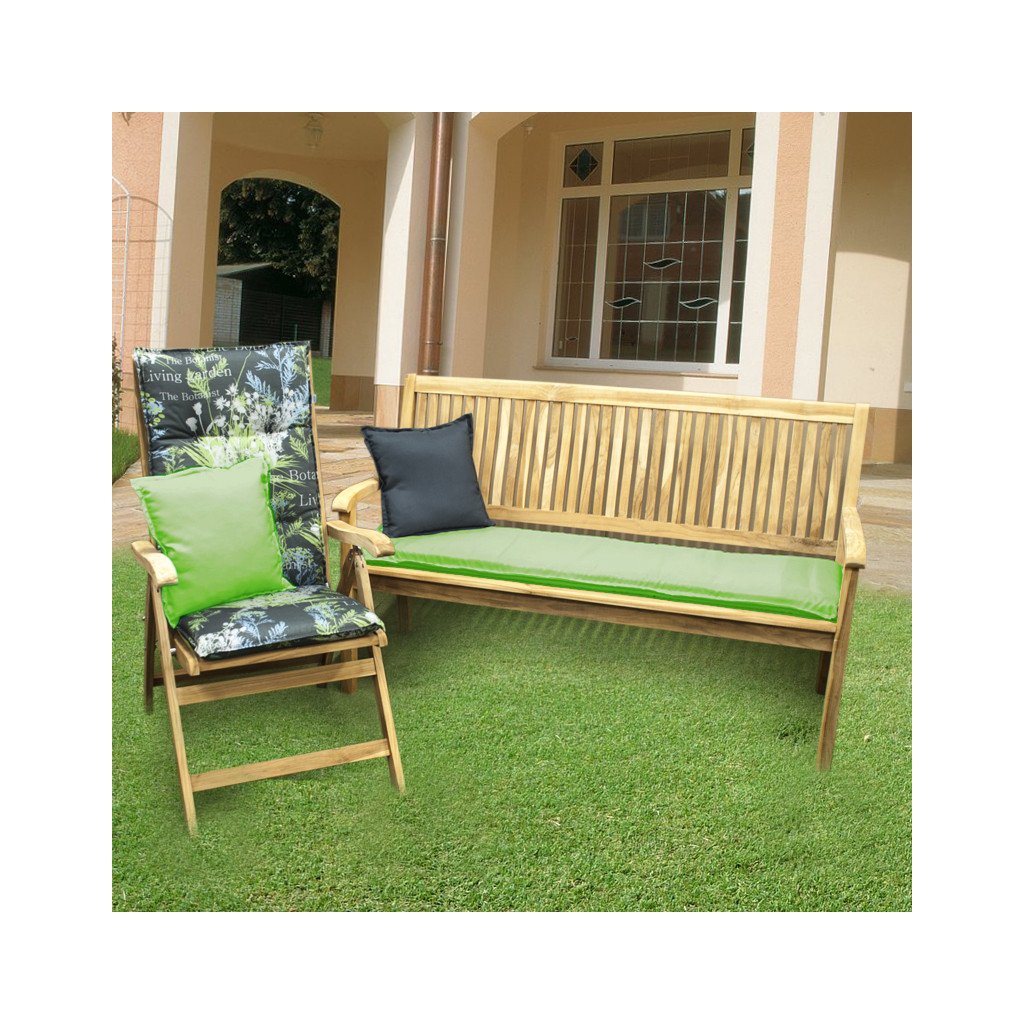 Polstr s vysokou opěrkou na zahradní nábytek řady LIVING je v provedení s obšitým lemem, prošitý kroužkově 4x v opěradle. Uchycení je pomocí posuvné spony. Díky sponě si můžete nastavit velikost dle rozměru a druhu židle, spona je pevná a nevytahuje se. Upevnění sedáku je pomocí dvou tkaniček v ohybu polstru. Síla polstru je optimální pro všechny druhy židlí. Provedení je vhodné i do náročných podmínek kaváren, zahrádek a restaurací. Potah je nesnímatelný.