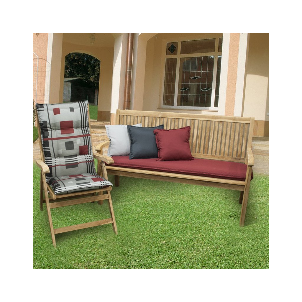 Polstr s vysokou opěrkou na zahradní nábytek řady LIVING je v provedení s obšitým lemem, prošitý kroužkově 4x v opěradle. Uchycení je pomocí posuvné spony. Díky sponě si můžete nastavit velikost dle rozměru a druhu židle, spona je pevná a nevytahuje se. Upevnění sedáku je pomocí dvou tkaniček v ohybu polstru. Síla polstru je optimální pro všechny druhy židlí. Provedení je vhodné i do náročných podmínek kaváren, zahrádek a restaurací. Potah je nesnímatelný.