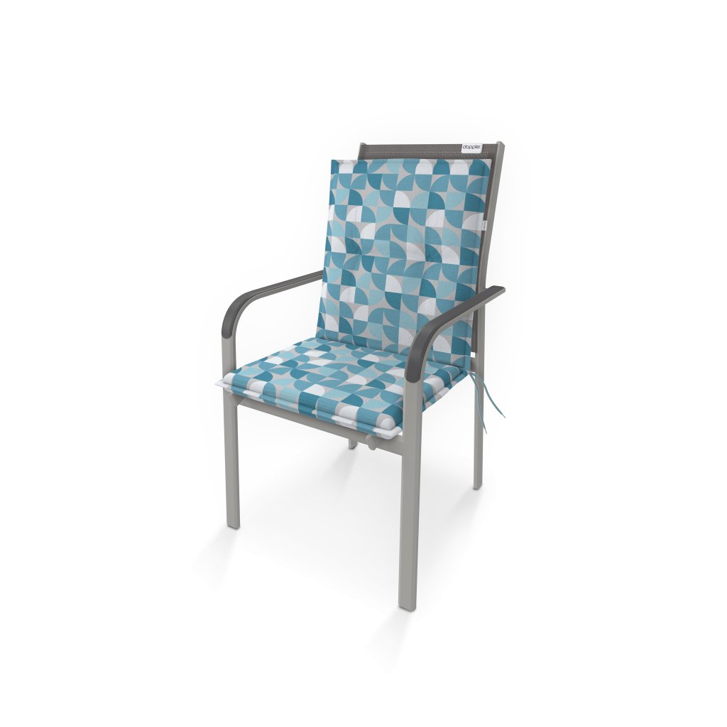 Polstr s nízkou opěrkou na zahradní nábytek řady LIVING je v provedení s obšitým lemem, prošitý kroužkově 2x v opěradle. Uchycení je pomocí posuvné spony. Díky sponě si můžete nastavit velikost dle rozměru a druhu židle, spona je pevná a nevytahuje se. Upevnění sedáku je pomocí dvou tkaniček v ohybu polstru. Síla polstru je optimální pro všechny druhy židlí. Provedení je vhodné i do náročných podmínek kaváren, zahrádek a restaurací. Potah je nesnímatelný.