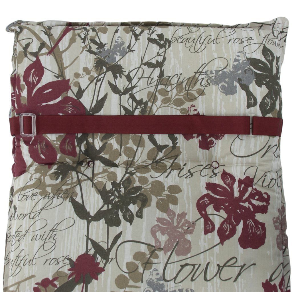Polstr na zahradní lehátko řady LIVING je v provedení s obšitým lemem, prošitý 4x v opěradle. Uchycení je pomocí posuvné spony. Díky sponě si můžete nastavit velikost dle rozměru a druhu židle, spona je pevná a nevytahuje se. Upevnění sedáku k zahradnímu nábytku je pomocí dvou tkaniček v ohybu polstru. Síla polstru je optimální pro všechny druhy židlí. Provedení je vhodné i do náročných podmínek kaváren, zahrádek a restaurací. Potah je nesnímatelný.