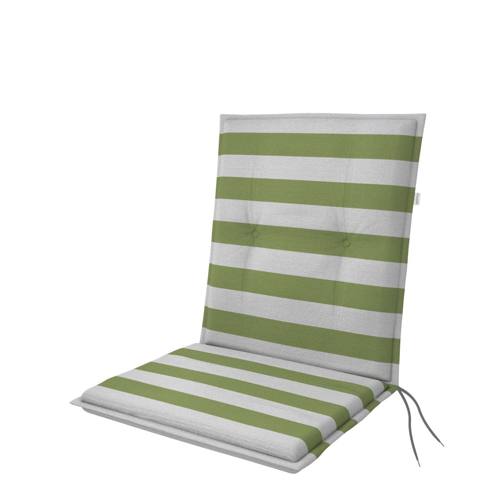 Polstr se střední opěrkou řady LIVING je v provedení s obšitým lemem, prošitý kroužkově 2x v opěradle. Uchycení je pomocí posuvné spony. Díky sponě si můžete nastavit velikost dle rozměru a druhu židle, spona je pevná a nevytahuje se. Upevnění sedáku je pomocí dvou tkaniček v ohybu polstru. Síla polstru je optimální pro všechny druhy židlí. Provedení je vhodné i do náročných podmínek kaváren, zahrádek a restaurací. Potah je nesnímatelný.