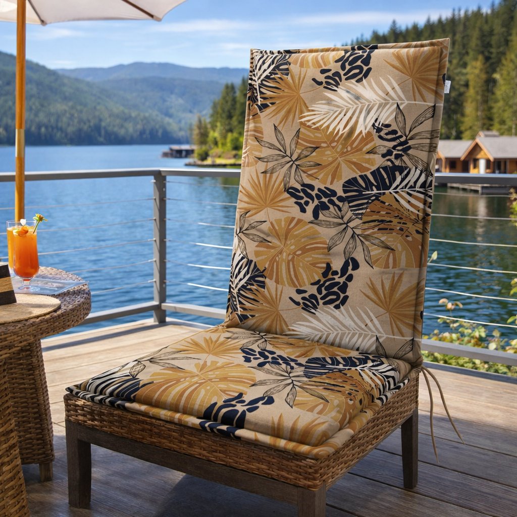 Polstr s vysokou opěrkou řady LIVING je v provedení s obšitým lemem, prošitý kroužkově 4x v opěradle. Uchycení je pomocí posuvné spony. Díky sponě si můžete nastavit velikost dle rozměru a druhu židle, spona je pevná a nevytahuje se. Upevnění sedáku je pomocí dvou tkaniček v ohybu polstru. Síla polstru je optimální pro všechny druhy židlí. Provedení je vhodné i do náročných podmínek kaváren, zahrádek a restaurací. Potah je nesnímatelný.