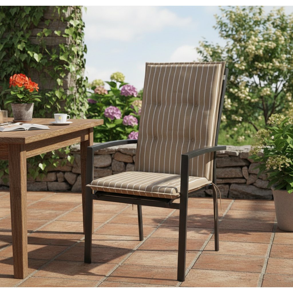 Polstr se střední opěrkou řady LIVING je v provedení s obšitým lemem, prošitý kroužkově 2x v opěradle. Uchycení je pomocí posuvné spony. Díky sponě si můžete nastavit velikost dle rozměru a druhu židle, spona je pevná a nevytahuje se. Upevnění sedáku je pomocí dvou tkaniček v ohybu polstru. Síla polstru je optimální pro všechny druhy židlí. Provedení je vhodné i do náročných podmínek kaváren, zahrádek a restaurací. Potah je nesnímatelný.