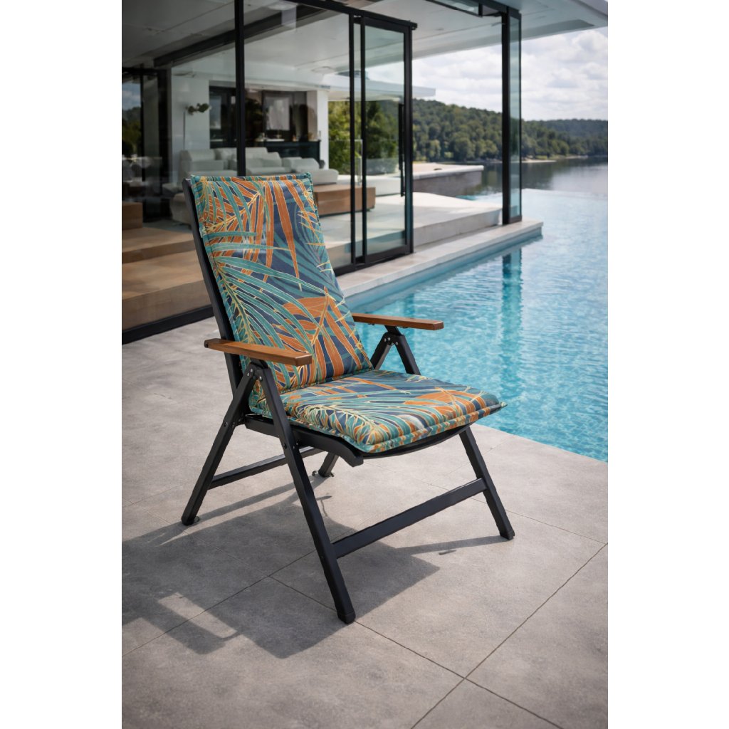 Polstr s vysokou opěrkou řady LIVING je v provedení s obšitým lemem, prošitý kroužkově 4x v opěradle. Uchycení je pomocí posuvné spony. Díky sponě si můžete nastavit velikost dle rozměru a druhu židle, spona je pevná a nevytahuje se. Upevnění sedáku je pomocí dvou tkaniček v ohybu polstru. Síla polstru je optimální pro všechny druhy židlí. Provedení je vhodné i do náročných podmínek kaváren, zahrádek a restaurací. Potah je nesnímatelný.