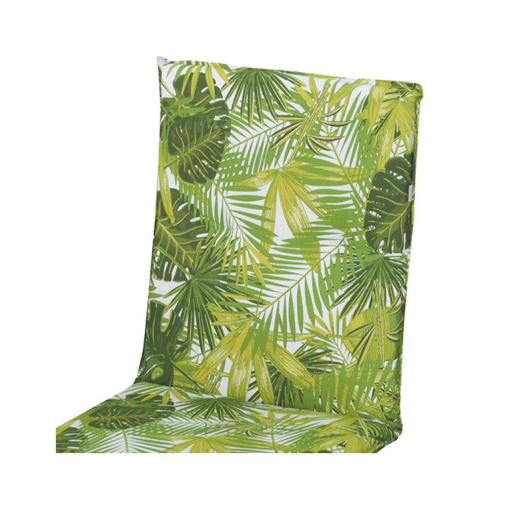Polstr s nízkou opěrkou na zahradní nábytek řady LIVING je v provedení s obšitým lemem, prošitý kroužkově 2x v opěradle. Uchycení je pomocí posuvné spony. Díky sponě si můžete nastavit velikost dle rozměru a druhu židle, spona je pevná a nevytahuje se. Upevnění sedáku je pomocí dvou tkaniček v ohybu polstru. Síla polstru je optimální pro všechny druhy židlí. Provedení je vhodné i do náročných podmínek kaváren, zahrádek a restaurací. Potah je nesnímatelný.