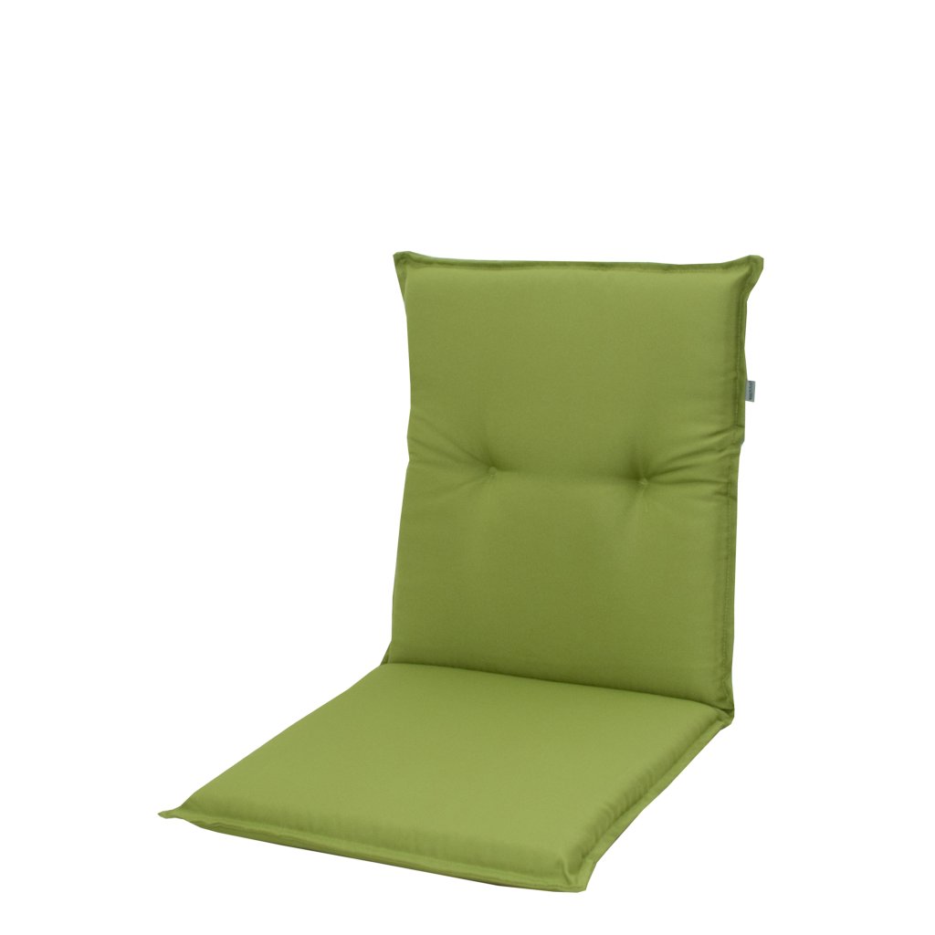 Polstry s nízkou opěrkou na zahradní nábytek řady LIVING HIT jsou v provedení s obšitým lemem, prošité kroužkově 2x v opěradle. Uchycení je pomocí posuvné spony. Díky sponě si můžete nastavit velikost dle rozměru a druhu židle, spona je pevná a nevytahuje se. Upevnění sedáku je pomocí dvou tkaniček v ohybu polstru. Potah je nesnímatelný.