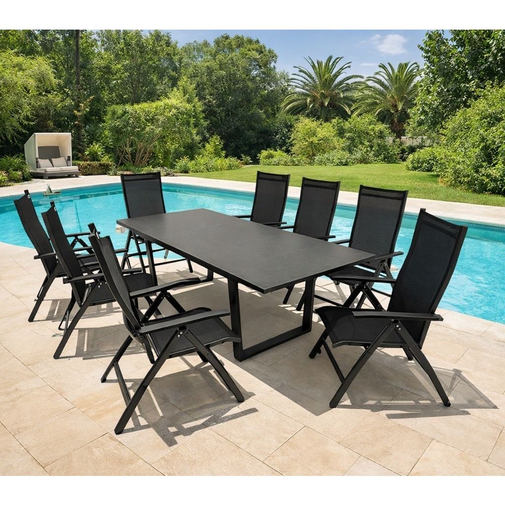Livorno Expert je praktická a elegantní zahradní souprava, ke které se pohodlně usadí celá rodina. Vyniká svým moderním designem, kvalitním a bezúdržbovým provedením i vysokou funkčností. Skládá se z 8 polohovacích zahradních křesel a velkého rozkládacího hliníkového stolu.