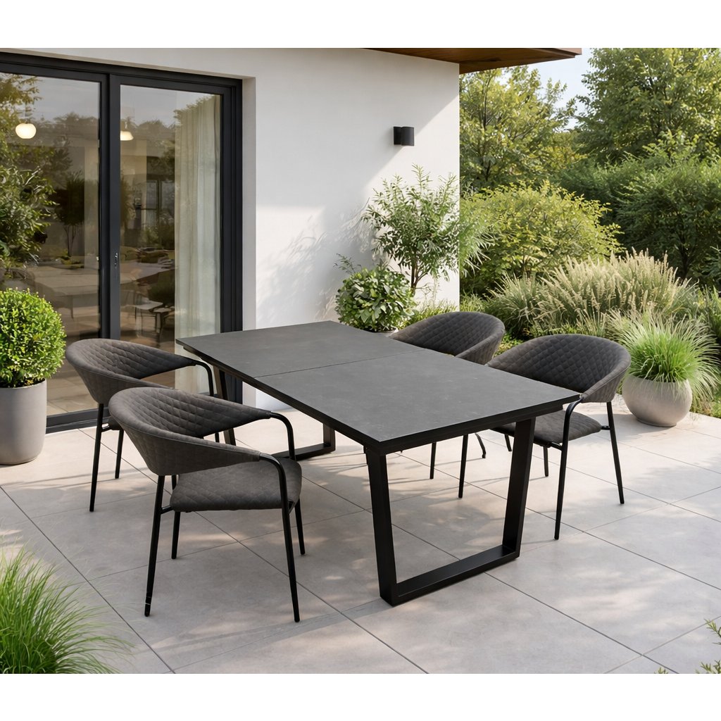 Velký zahradní rozkládací stůl je moderní, nadčasový zahradní nábytek. Jednoduché a čisté linie stolu jsou vhodné do každého prostředí. Konstrukce stolu je vyrobená z vysoce kvalitní hliníkové slitiny v antracitové barvě. Deska stolu je z 5mm skla s nástřikem imitujícím vzhled keramiky.