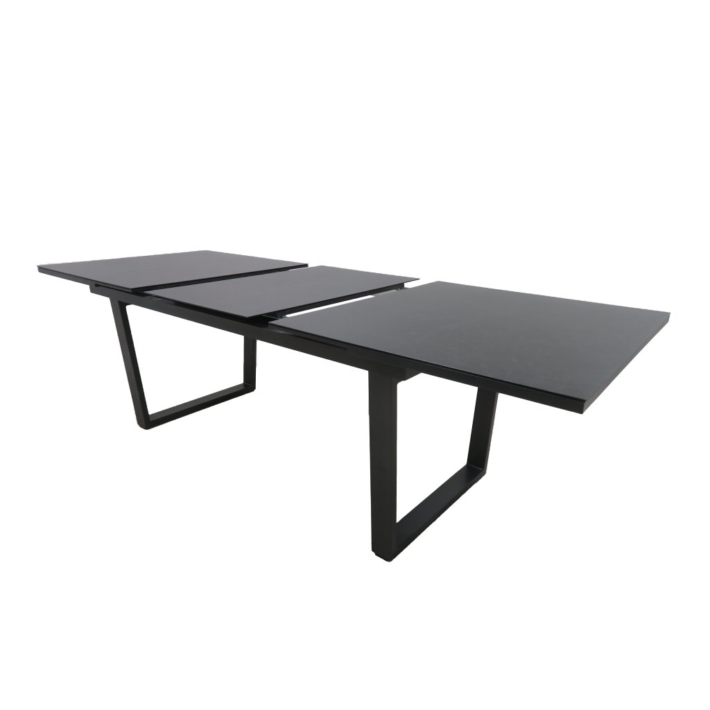 Stůl Livorno zaujme svými jednoduchými, čistými liniemi a možností snadného rozložení jednou rukou až na délku 240 cm. Celý stůl je vyroben z vysoce kvalitní hliníkové slitiny v antracitové barvě. Má skleněnou desku s nástřikem imitujícím keramiku. Stůl je zcela bezúdržbový, s dlouhou životností.
