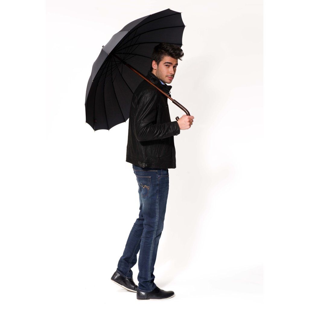Pánský holový deštník. Kostra deštníku je vyrobena z oceli a dřeva zaručuje pevnost pomocí kvalitních šestnácti drátů, je velmi stabilní . Polyesterový potah je odolný proti změnám vlhkosti a teplot, nesráží se. Veliká střecha.