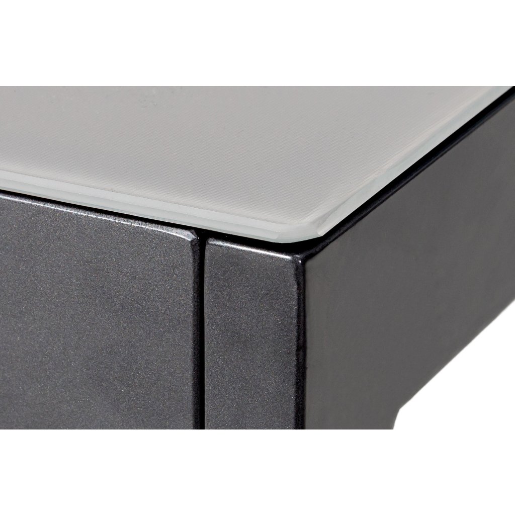 Stůl Luna zaujme svým minimalistickým designem. Má odolnou hliníkovou konstrukci doplněnou o desku z 5mm šedého strukturovaného skla. Všechny použité materiály dobře odolávají povětrnostním vlivům a jsou bezúdržbové.