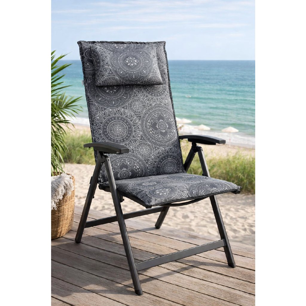 Polstr s vysokou opěrkou na zahradní nábytek je v provedení s obšitým lemem. Uchycení je pomocí posuvné spony. Díky sponě si můžete nastavit velikost dle rozměru a druhu židle, spona je pevná a nevytahuje se. Upevnění sedáku je pomocí dvou tkaniček v ohybu polstru. Síla polstru je optimální pro všechny druhy židlí. Provedení je vhodné i do náročných podmínek kaváren, zahrádek a restaurací. Polstr je v provedení se zipem, potah je snímatelný a je ho možno prát.