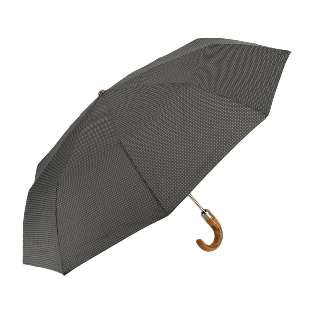 Pánský plně automatický deštník v moderním provedení se zahnutou dřevěnou rukojetí. Kostra deštníku je vyrobena v kombinaci materiálů sklolaminát a ocel zaručuje pevnost a stabilitu. Při otočení deštníku nedojde k jeho poškození. Odolný proti korozi. Polyesterový potah je odolný proti změnám vlhkosti a teplot, nesráží se.Pánský plně automatický deštník v moderním provedení se zahnutou dřevěnou rukojetí. Kostra deštníku je vyrobena v kombinaci materiálů sklolaminát a ocel zaručuje pevnost a stabilitu. Při otočení deštníku nedojde k jeho poškození. Odolný proti korozi. Polyesterový potah je odolný proti změnám vlhkosti a teplot, nesráží se.