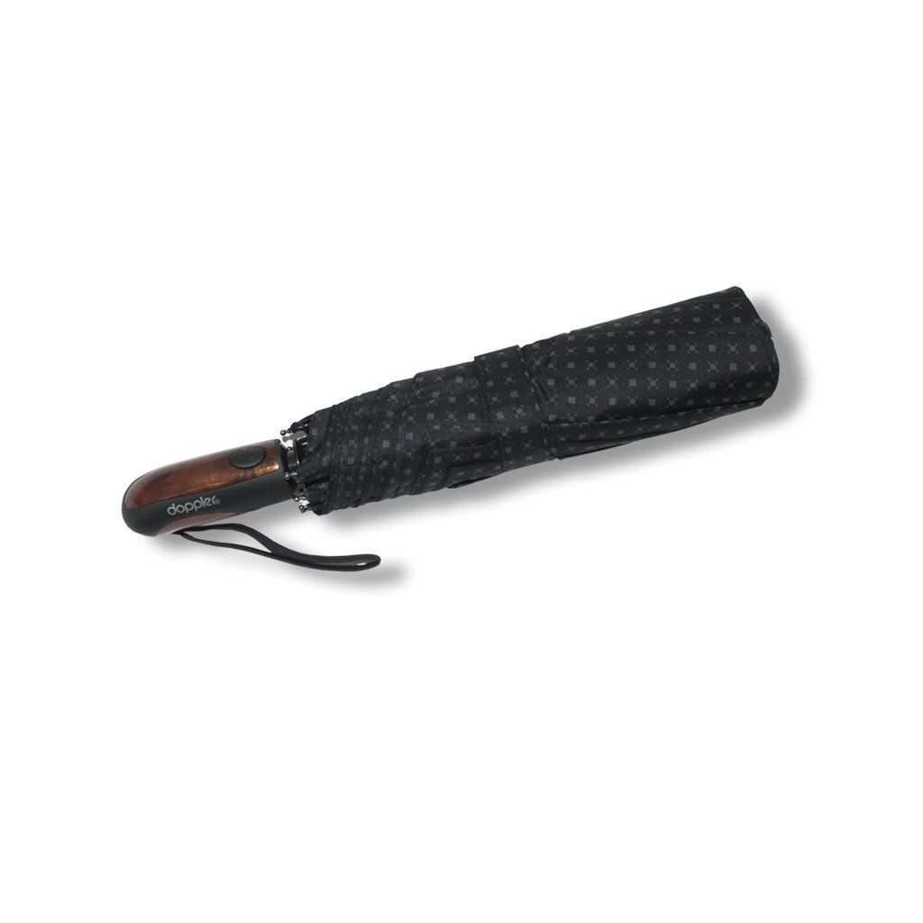 Partnerský plně automatický skládací deštník. Potah černý s šedými a stříbrnými pruhy. Velice kvalitní konstrukce ze sklolaminátu, oceli a karbonu. Poslední dva díly ze sklolaminátu, při převrácení deštníku větrem nedojde k jeho poškození, deštník se snadno překlopí zpět do původní polohy. Veliká střecha a praktické pouzdro na zip. Polyesterový potah je odolný změnám vlhkosti a teplot, nesráží se.