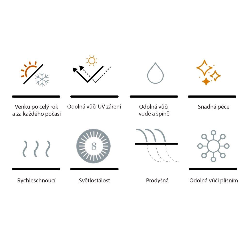 - odolná vůči UV záření a vyblednutí (vysoká světlostálost 8)