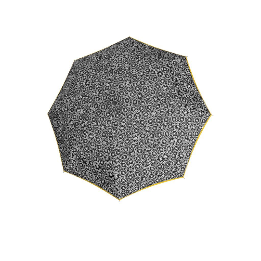 Mini Triple je dámský mechanický deštník s květinovým vzorem v černo - bílé barvě a žlutými detaily.