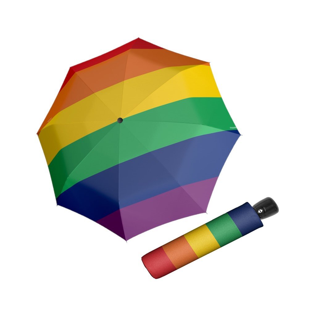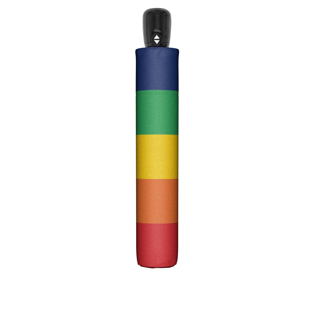 Modern Art Pride Rainbow je praktický skládací dámský deštník s originálním motivem. Je plně automatický, takže jej snadno otevřete jednou rukou pouhým stisknutím tlačítka. Deštník má velmi kvalitní černou konstrukci kombinující v sobě pružnost sklolaminátu a pevnost oceli. Díky tomu při převrácení deštníku větrem nedojde k jeho poškození, ale lze jej jednoduše překlopit zpět do původní polohy. Potah je vyrobený z látky pongee, která je příjemná na omak a zároveň odolná vůči změnám vlhkosti a teplot, nesráží se.