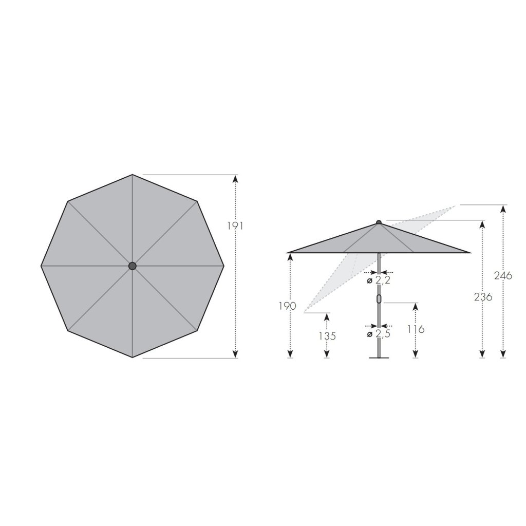 - celková výška otevřeného slunečníku: cca 236 cm
