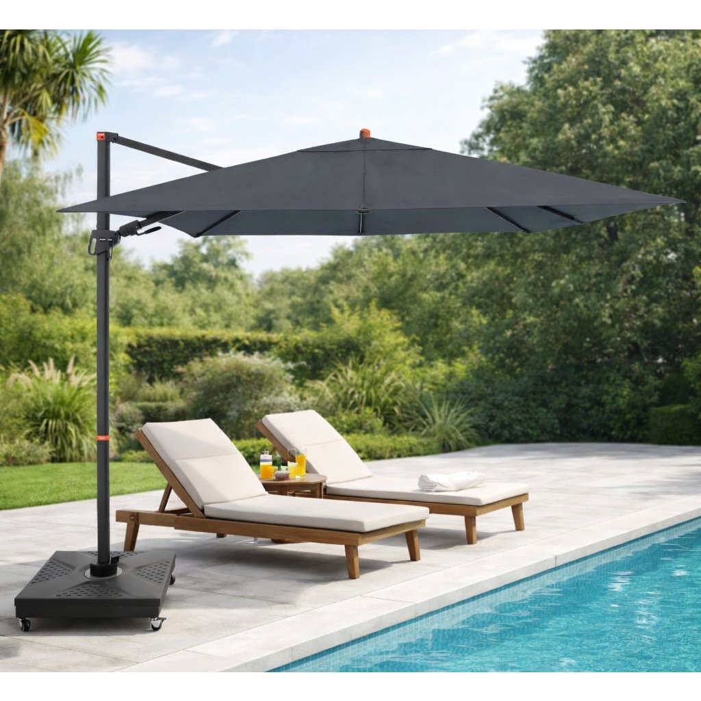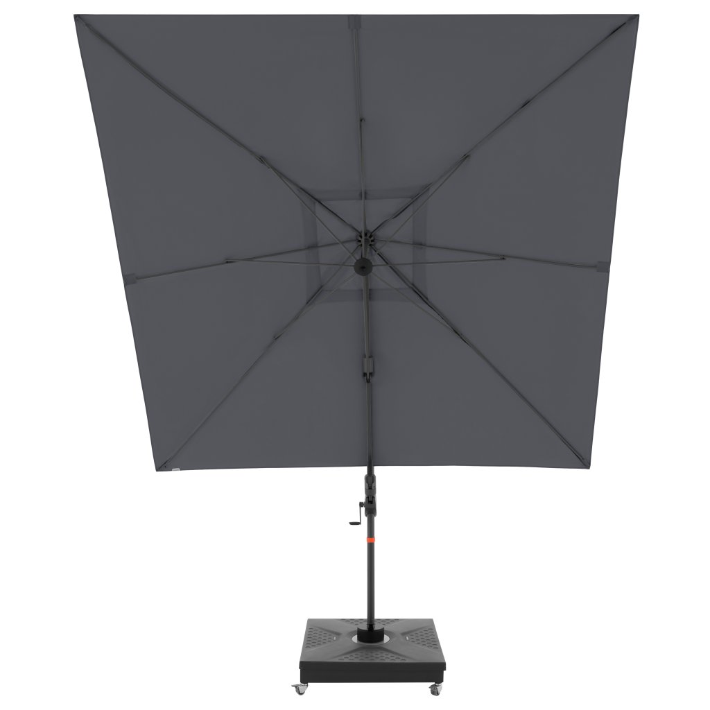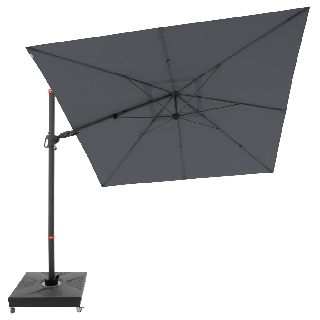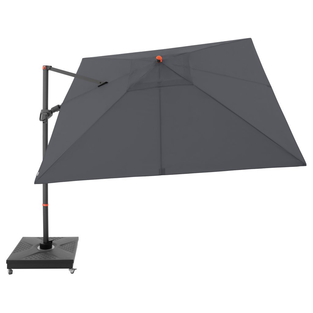 Díky čtvercové střeše je slunečník zvláště vhodný pro zastínění zahradního nábytku. Slunečník lze také otáčet o 360 stupňů, osově natáčet na obě strany a naklápět dozadu v sedmi polohách.