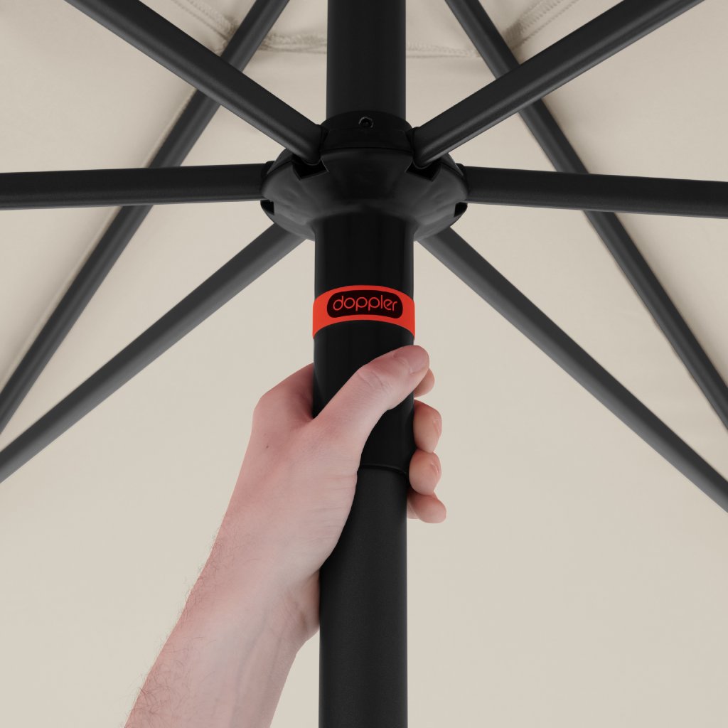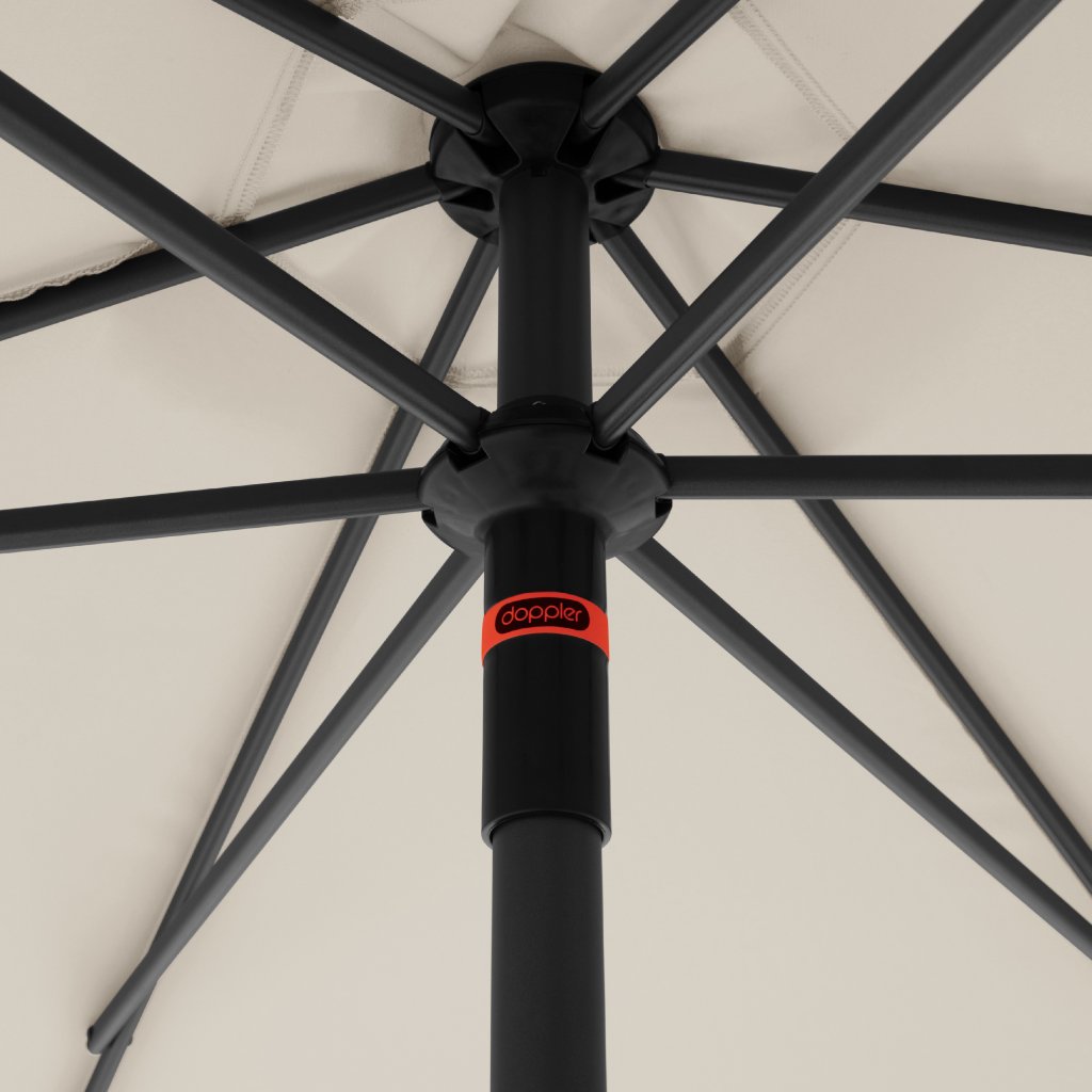 Slunečník je vybaven ""Push up"" funkcí pro snadnější otevírání a zavírání. Slunečník disonuje komfortní funkcí naklopení střechy. Slunečník je možné výškověnastavit o 15 cm. Díkyvzduchovému ventiluve střeše se pod slunečníkem nekumuluje horký letní vzduch.
