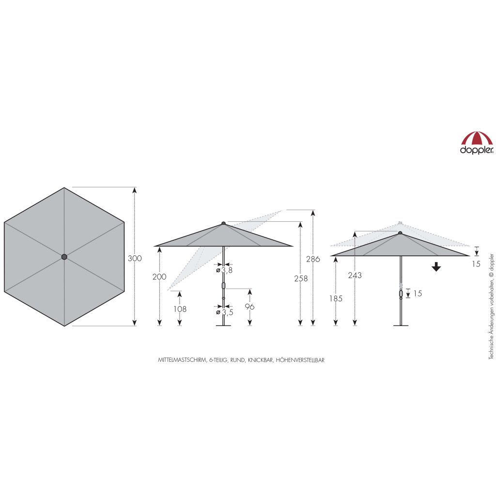 naklápěcí slunečník, 300 cm|