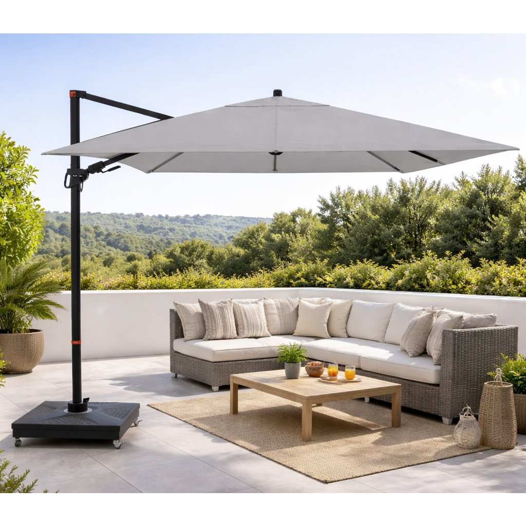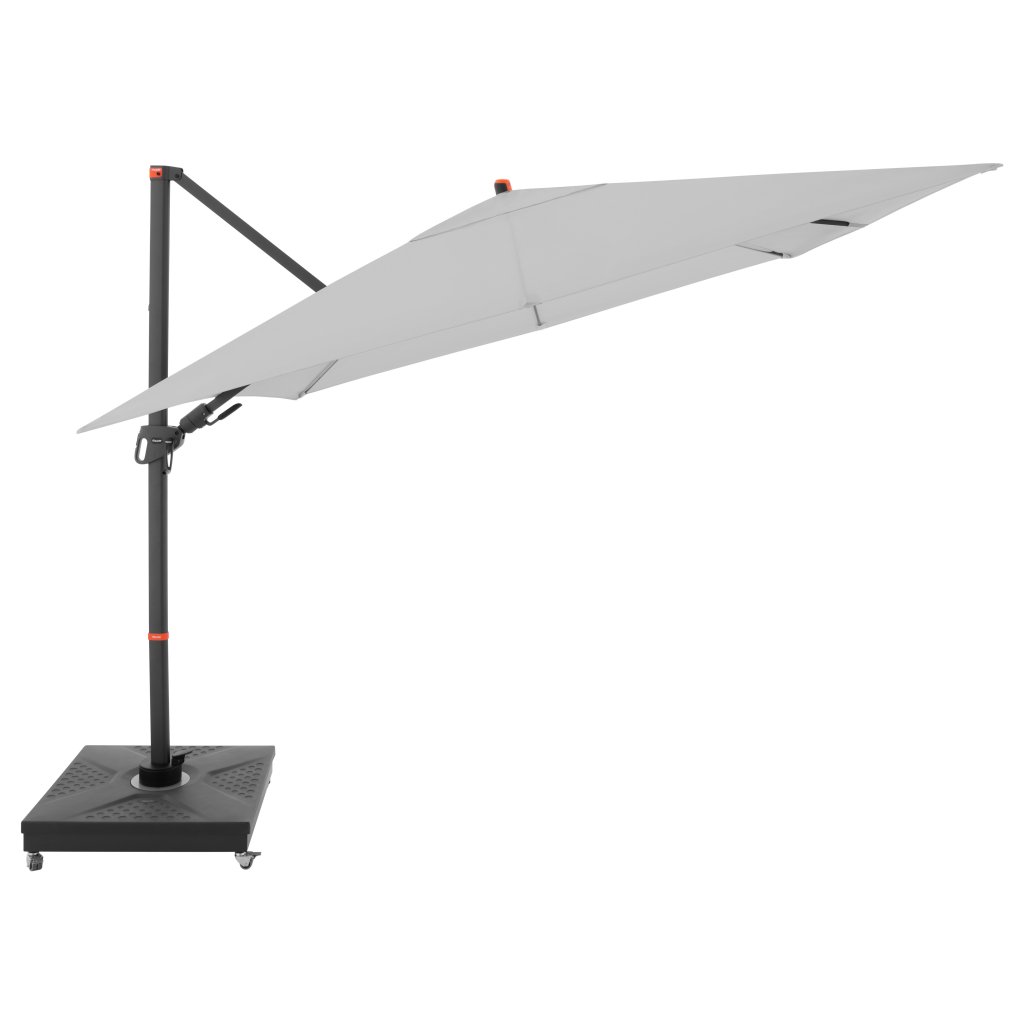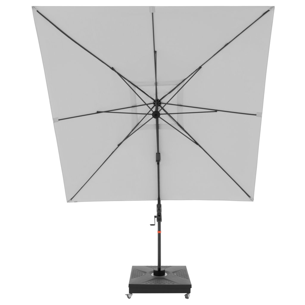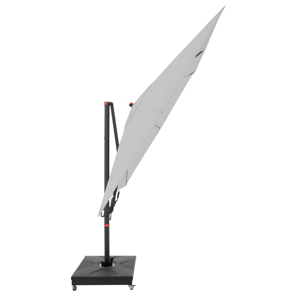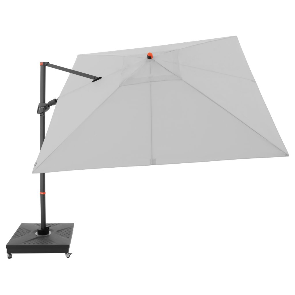 Díky čtvercové střeše je slunečník zvláště vhodný pro zastínění zahradního nábytku. Slunečník lze také otáčet o 360 stupňů, osově natáčet na obě strany a naklápět dozadu v sedmi polohách.