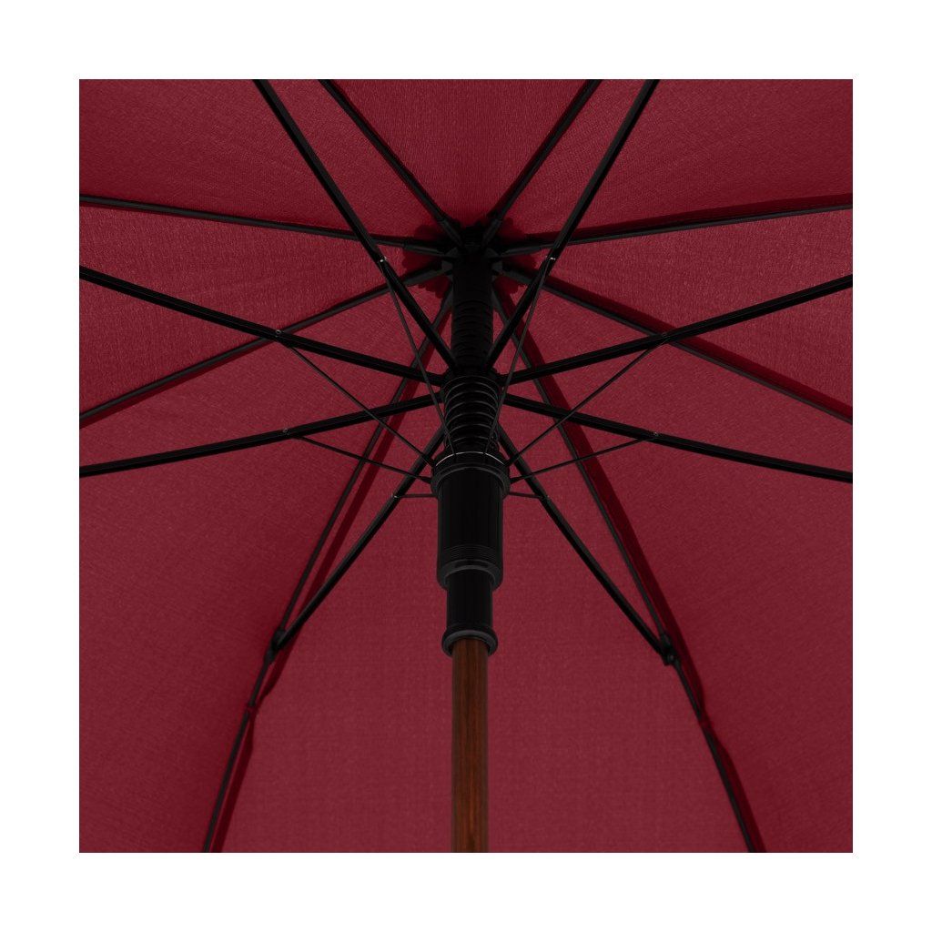Holový deštník. Kostra deštníku je vyrobena ze sklolaminátu a dřeva zaručuje pevnost a stabilitu. Polyesterový potah je odolný proti změnám vlhkosti a teplot, nesráží se. Veliká střecha.