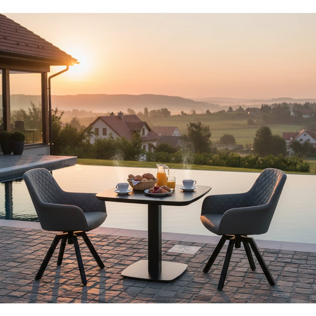 Otočné zahradní křeslo Paris LIKA-TEX® šedé patří mezi novinky zahradního nábytku značky DOPPLER. Designové lehké křeslo má stabilní hliníkovou konstrukci v antracitové barvě. Pohodlné sezení na tomto křesle zaručí měkké polstrování s ozdobným prošíváním z vysoce kvalitní textilie LIKA-TEX®. Ta umožňuje nechávat křeslo celoročně venku, nehledě na počasí. Křeslo je otočné o 360°.