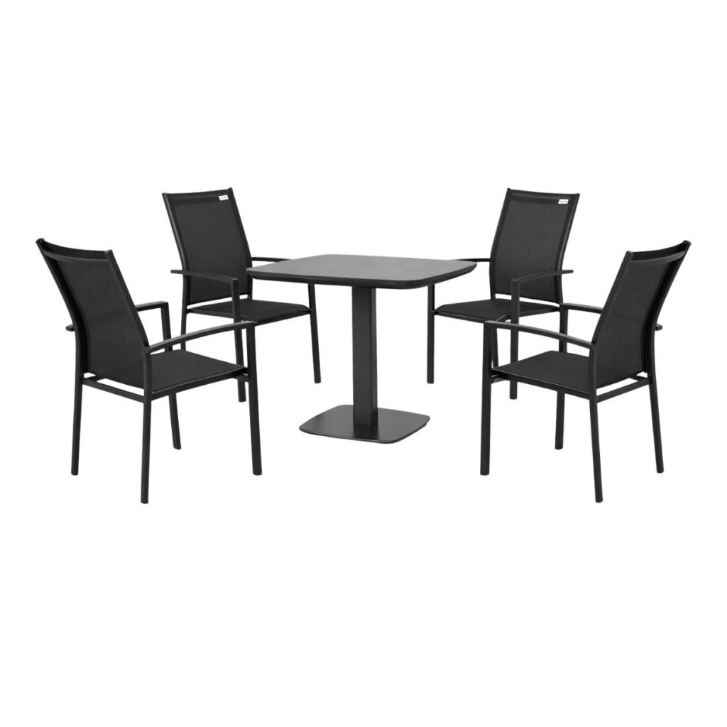 Stůl je dostatečně kompaktní, aby se vešel i na menší prostor, ale zároveň dostatečně prostorný pro pohodlné stolování čtyř osob. Jeho nadčasový design a kvalitní zpracování z něj dělají ideální prvek moderního venkovního sezení.