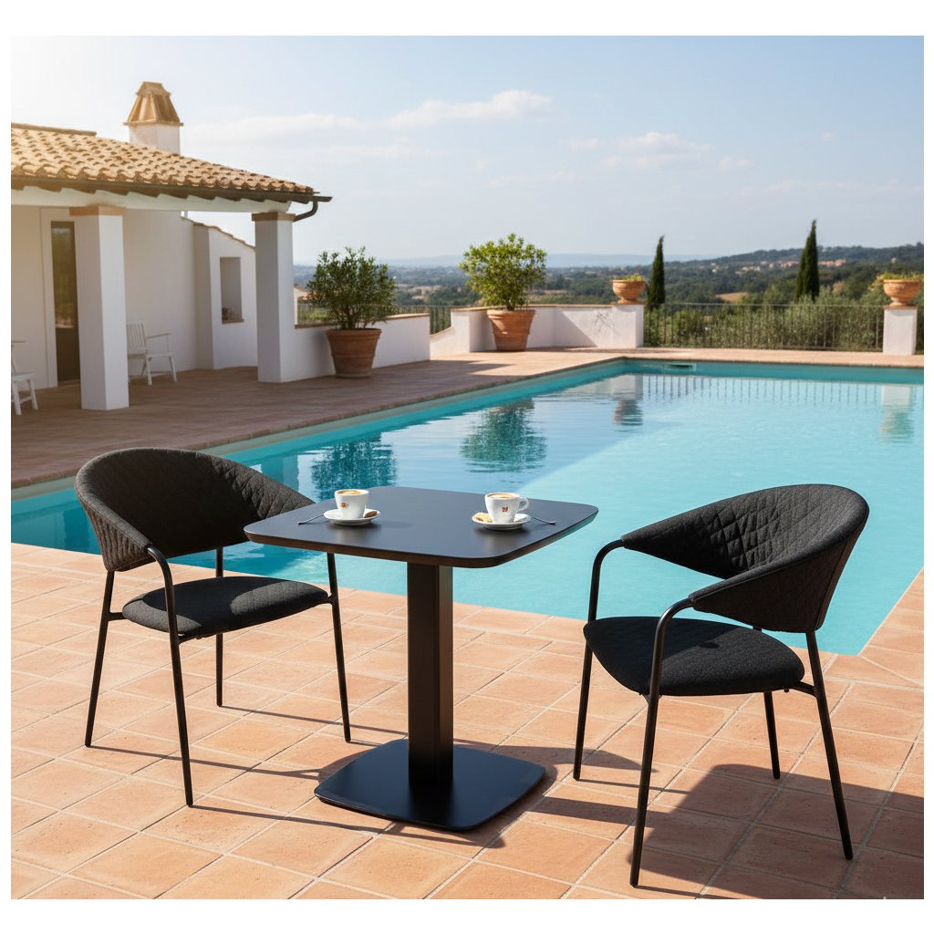 Zahradní souprava PICASO MELIA spojuje moderní design, odolnost vůči povětrnostním vlivům a vysoký komfort při sezení. Je ideální volbou pro ty, kteří chtějí vytvořit útulné a funkční posezení na menší zahradě, terase nebo prostornějším balkoně. Sestava se skládá ze stolu PICASO o rozměrech 80 × 80 cm a elegantních, luxusně polstrovaných křesel Melia LIKA-TEX® v antracitovém provedení.