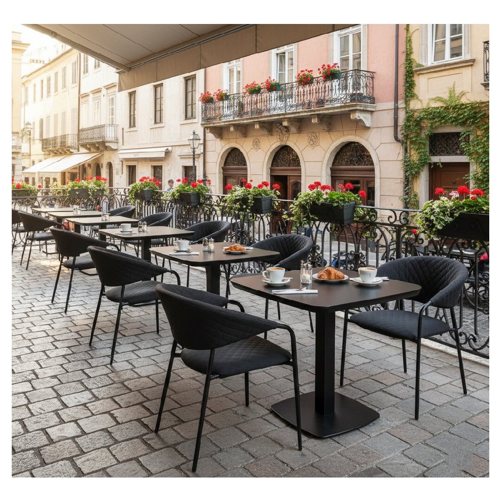 Zahradní stůl PICASO vyniká stabilní hliníkovou konstrukcí v antracitové barvě a deskou z HPL materiálu v přírodním dekoru. HPL (High Pressure Laminate) je vícevrstvý laminát slisovaný pod vysokým tlakem a teplotou, který je mimořádně odolný vůči poškrábání, opotřebení, teplotním výkyvům i vlhkosti. Díky své bezspárové a barevně stálé povrchové úpravě se velmi snadno udržuje a hodí se nejen do domácích prostor, ale i pro gastro provozy. Rozměr 80 × 80 cm je ideální pro menší prostory, aniž by byl kompromisem pro pohodlné stolování až čtyř osob.