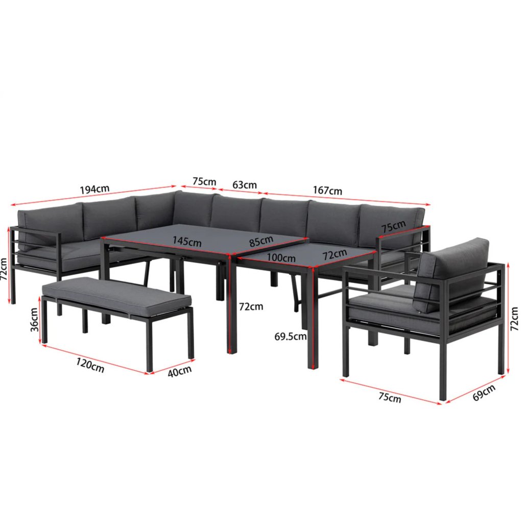 Jídelní lounge set Portland z hliníku se dokonale přizpůsobí vašim potřebám – ať už jej chcete mít s levým nebo pravým rohem, nebo jako samostatnou lavici – volba je jen na vás! Díky praktickému rozkládacímu stolu jste připraveni na každou příležitost, ať už jde o útulnou večeři ve dvou, nebo setkání s přáteli ve větší skupině.