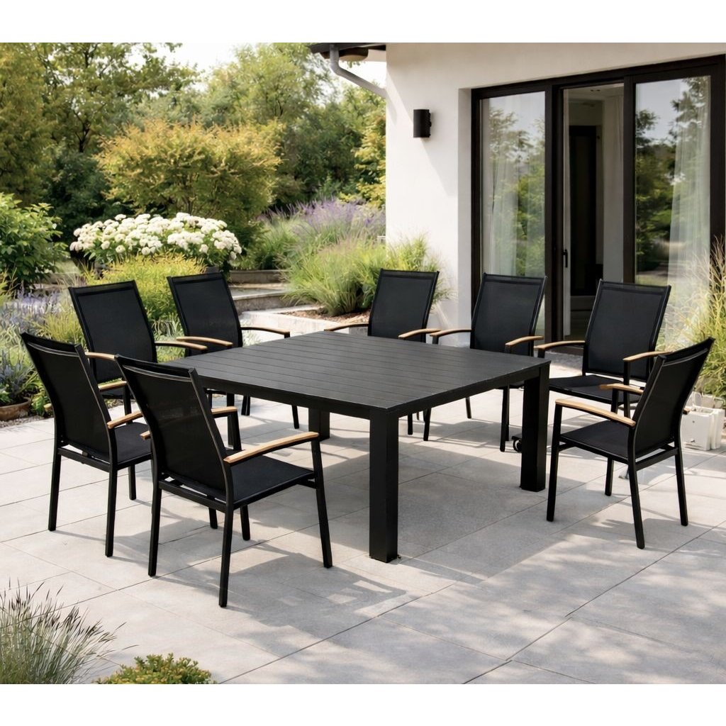 Prato Expert Wood je praktická a bezúdržbová zahradní souprava, ke které se pohodlně usadí celá rodina. Má moderní, čistý design, vyzdvihující přirozenou krásu a vysokou funkčnost hliníku. Skládá se z 8 stohovacích zahradních křesel a velkého hliníkového čtvercového stolu.
