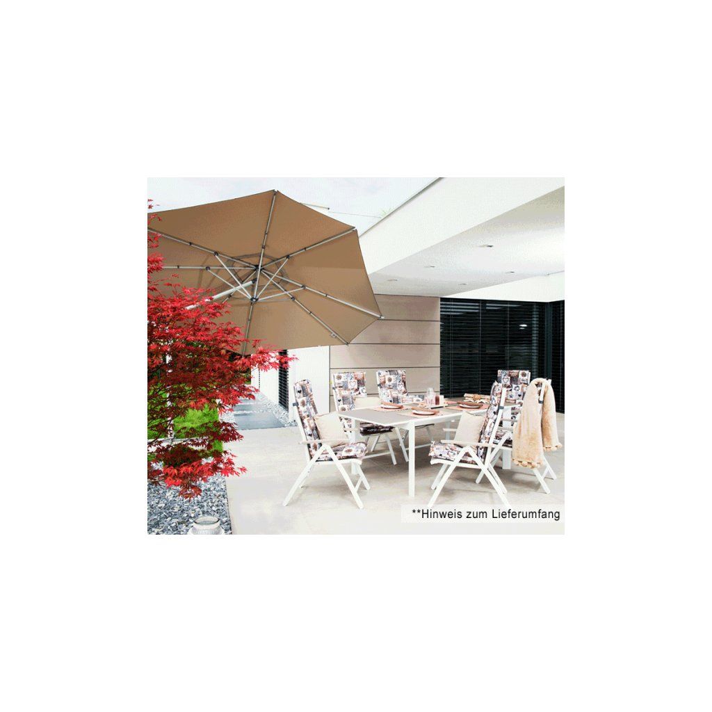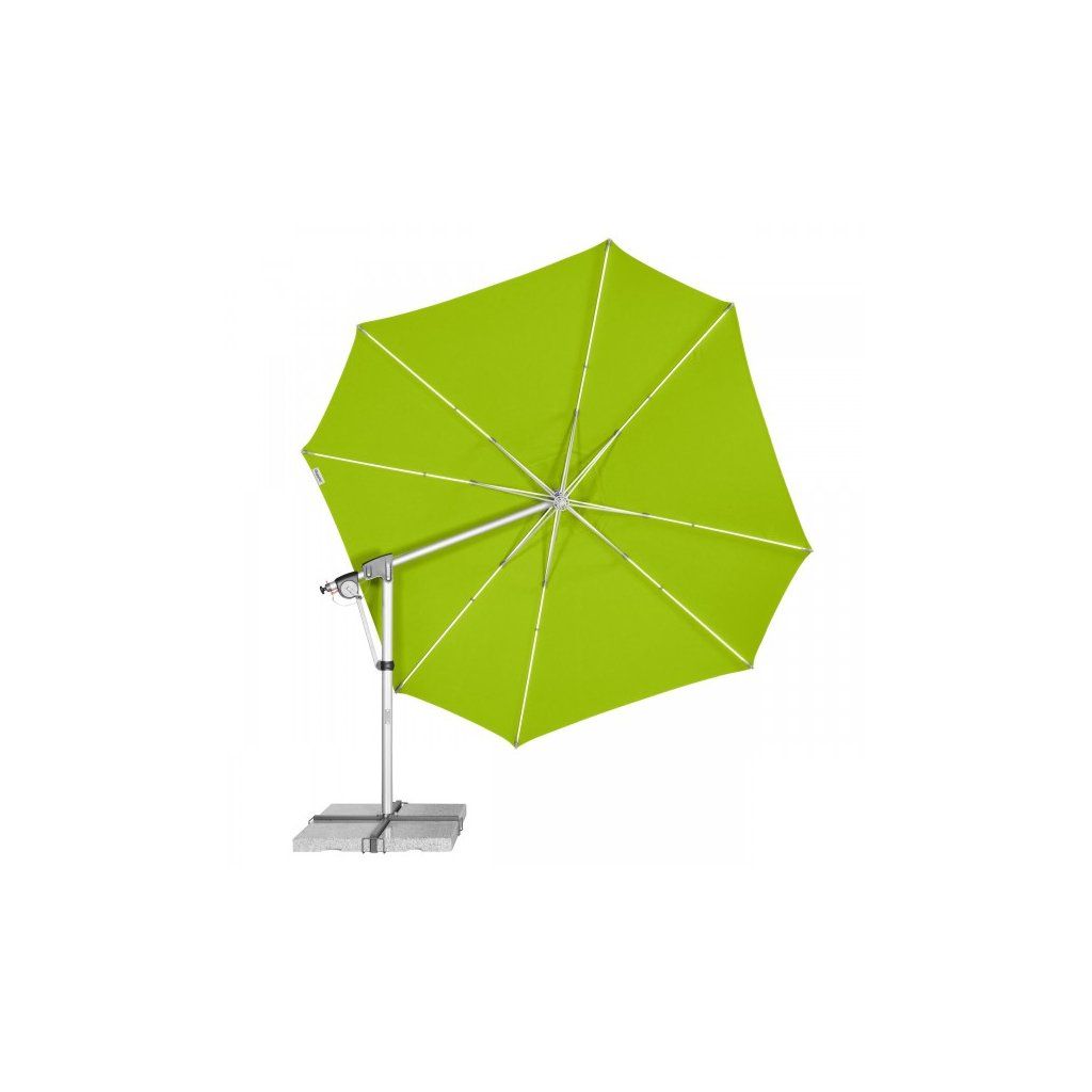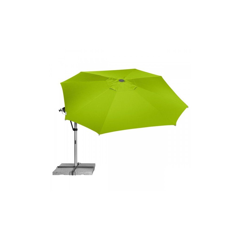 Vysoce kvalitní slunečník otočný o 360° ""ideální"" pro přizpůsobení se téměř každé poloze slunce.Celý rám je vyroben z vysoce kvalitního hliníku obohaceného o prvky hořčíku a křemíku. Použitím patentovaného mechanismu je možné naklápět střechu slunečníku v obou směrech. Potah slunečníku je tkaný ve dvou barvách a má vysokou stálobarevnost a vysokou UV ochranu 80. Potah slunečníku je snímatelný a je možné ho čistit ručním praním. Všechny pohyblivé části jsou šroubovány a jsou proto snadno vyměnitelné. Součástí balení je i ochranný obal se zipem a tyčkou pro snazší manipulaci. Záruka na potah 5 let proti vyblednutí (při použití pro soukromé účely).