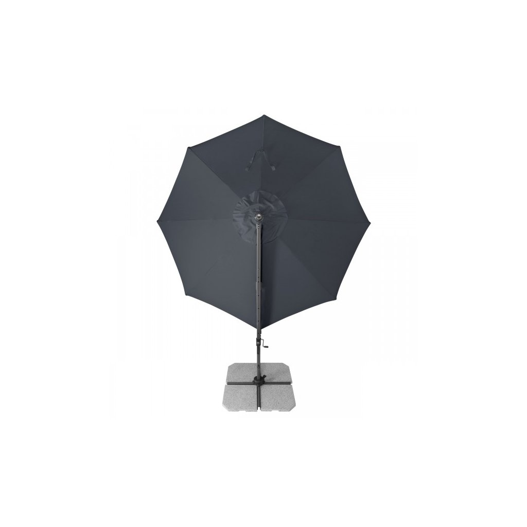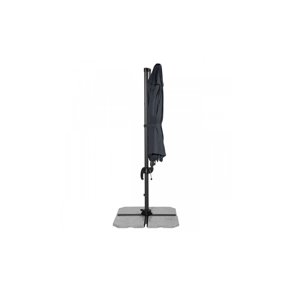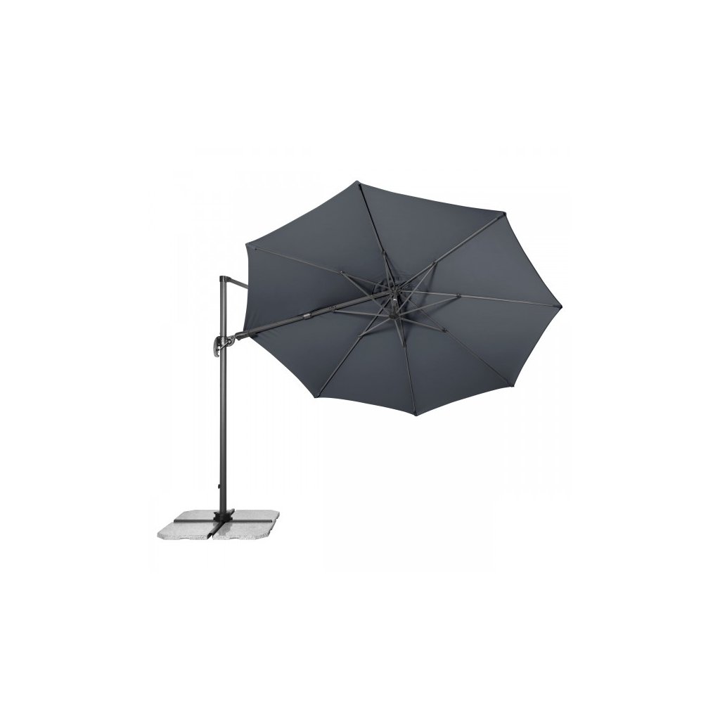 Funkční slunečník je vybaven klikovým mechanismem a je snadno ovladatelný. Potah slunečníku je vyroben z polyesterové tkaniny, je vodoodpudivý a má dobrou UV ochranu SPF 50+. Slunečník je otočný o 360 °, je možné ho naklápět v sedmi pozicích a axiálně natáčet na obě strany. Slunečník je dodáván se stojanem pro 4 ks desek 50x50x4 cm (bez desek 50x50x4 cm).