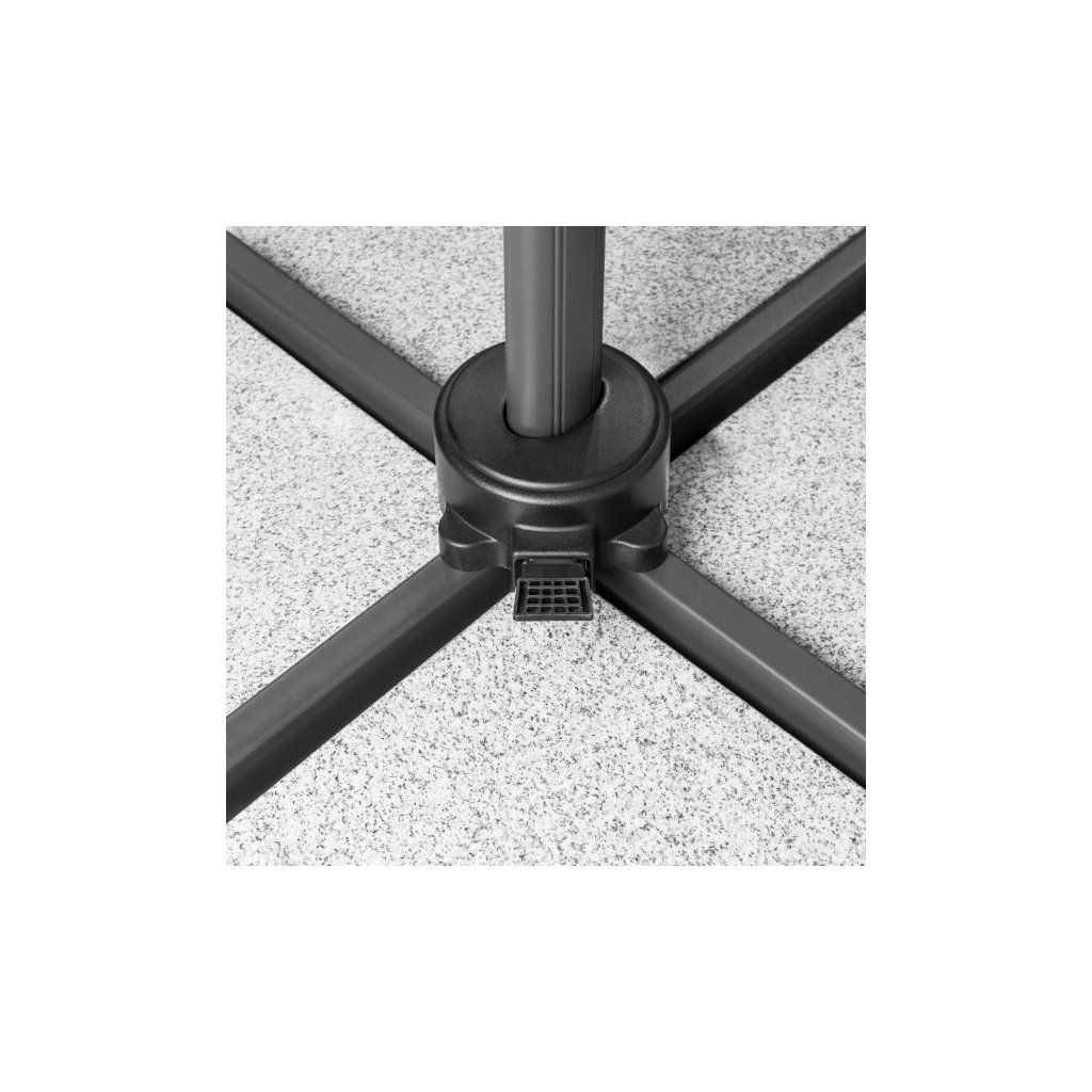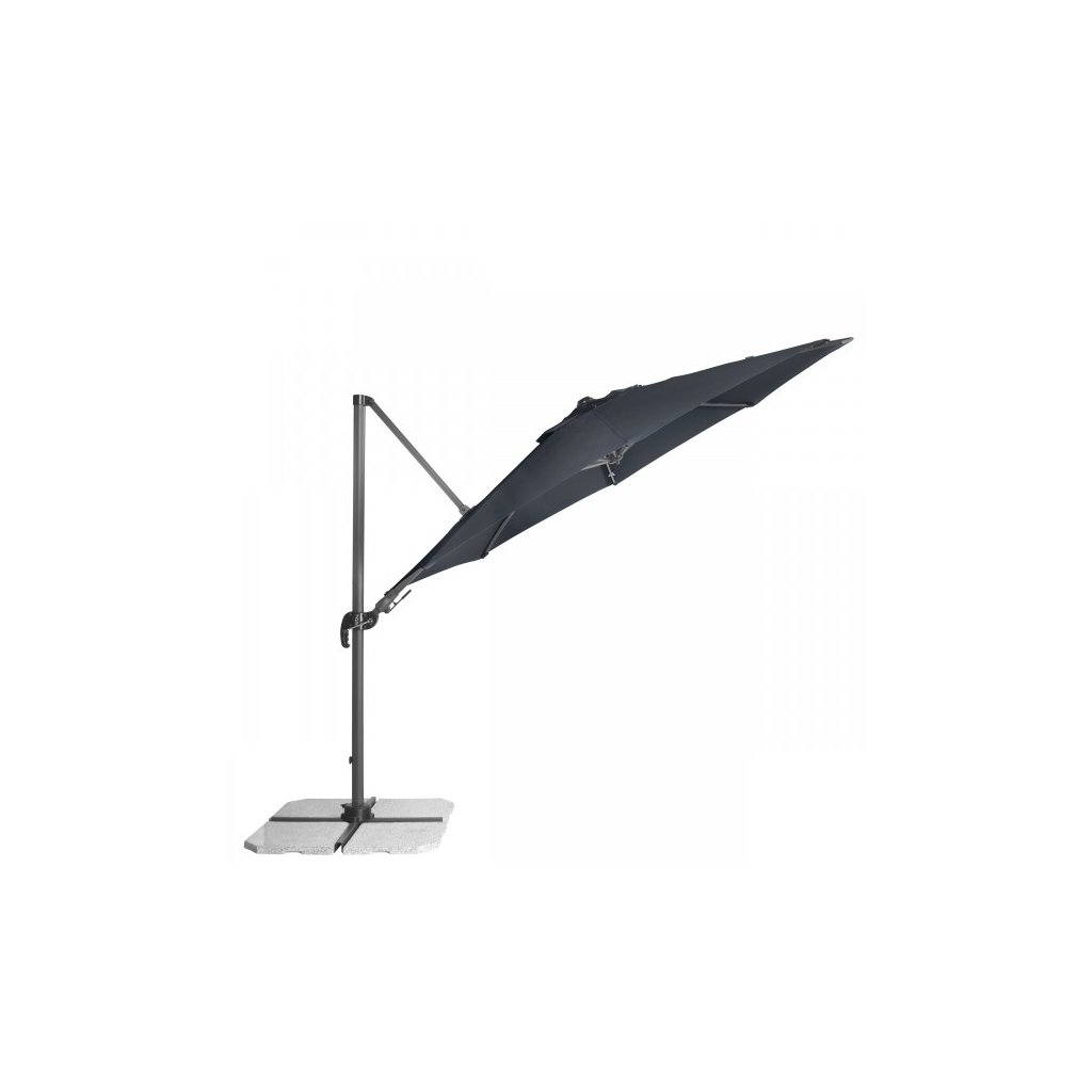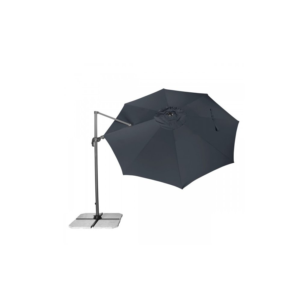 Funkční slunečník je vybaven klikovým mechanismem a je snadno ovladatelný. Potah slunečníku je vyroben z polyesterové tkaniny, je vodoodpudivý a má dobrou UV ochranu SPF 50+. Slunečník je otočný o 360 °, je možné ho naklápět v sedmi pozicích a axiálně natáčet na obě strany. Slunečník je dodáván se stojanem pro 4 ks desek 50x50x4 cm (bez desek 50x50x4 cm).
